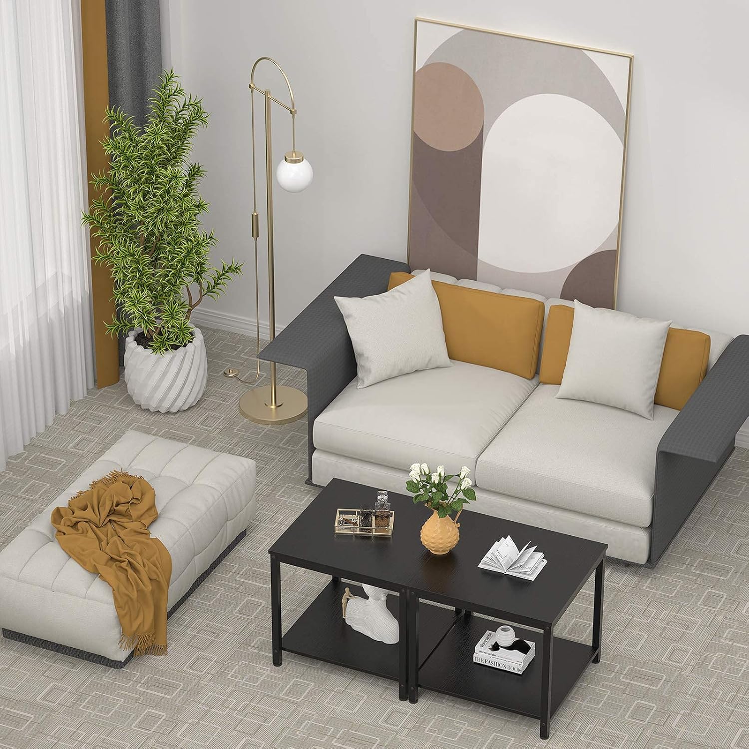 Homieasy Side Table 20 Inch Square, 2-Tier Coffee Tea End Table Nightstands for Sofa Couch Bed, Metal Wood Accent Modern Simple Industrial Style Side Table for Living Room Bedroom, Black