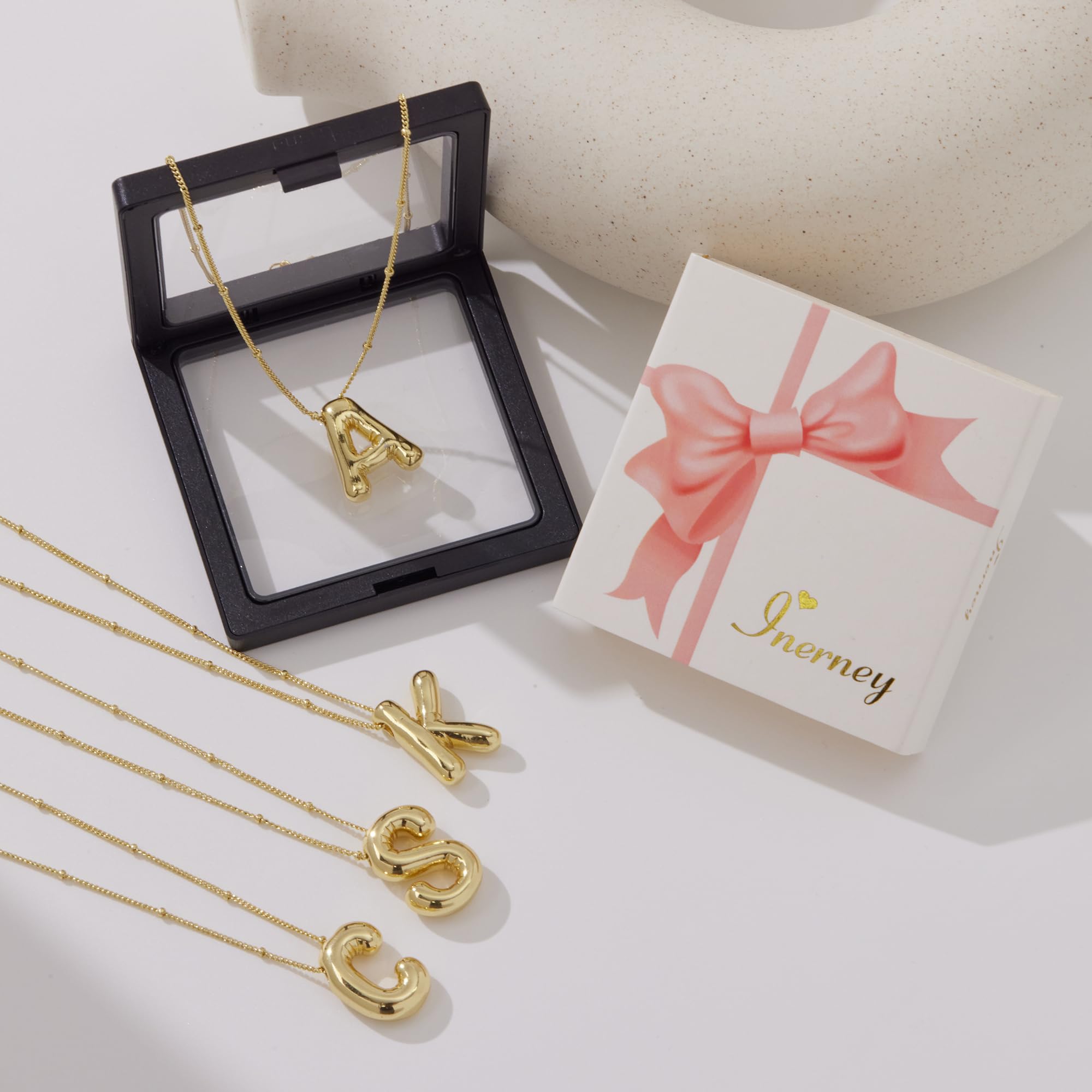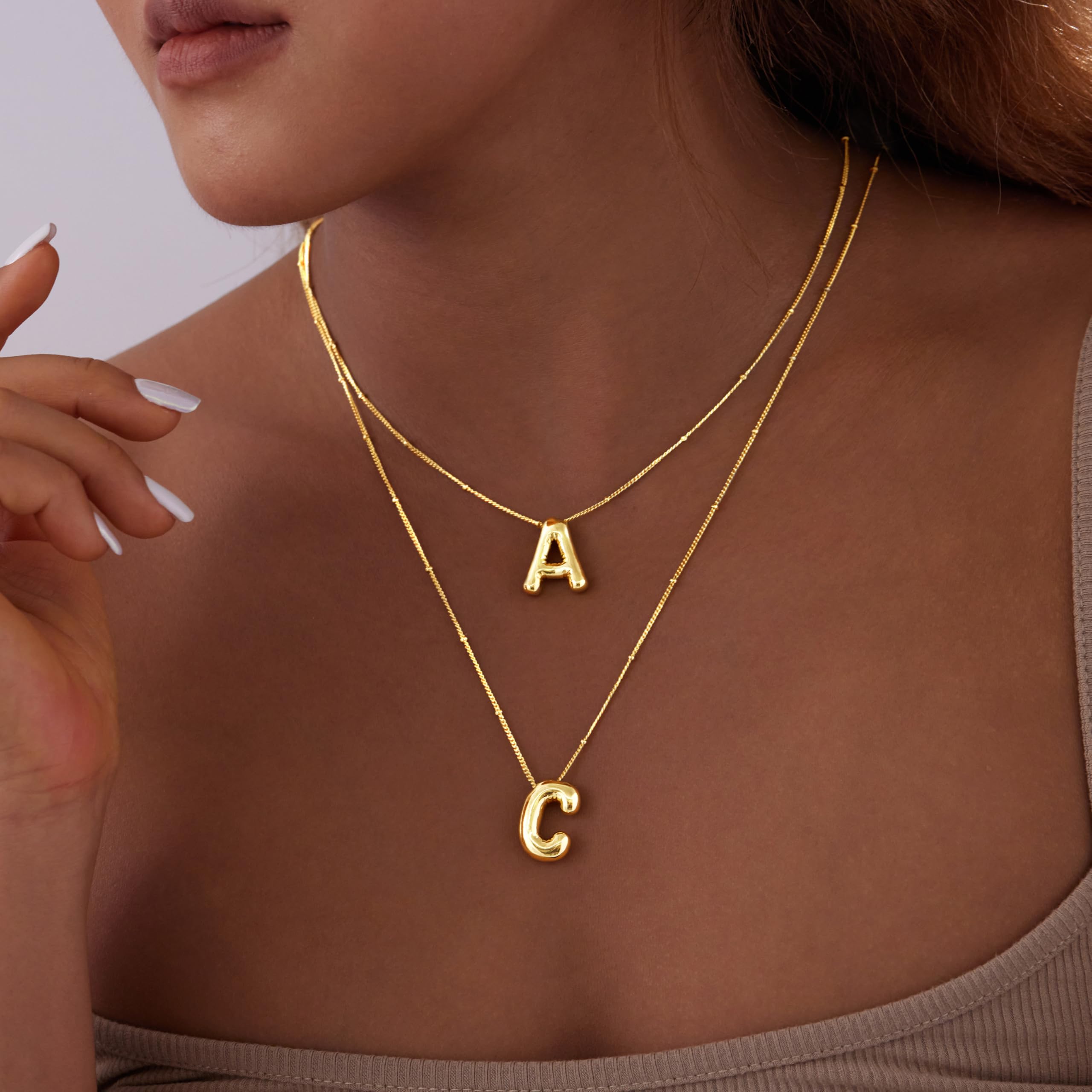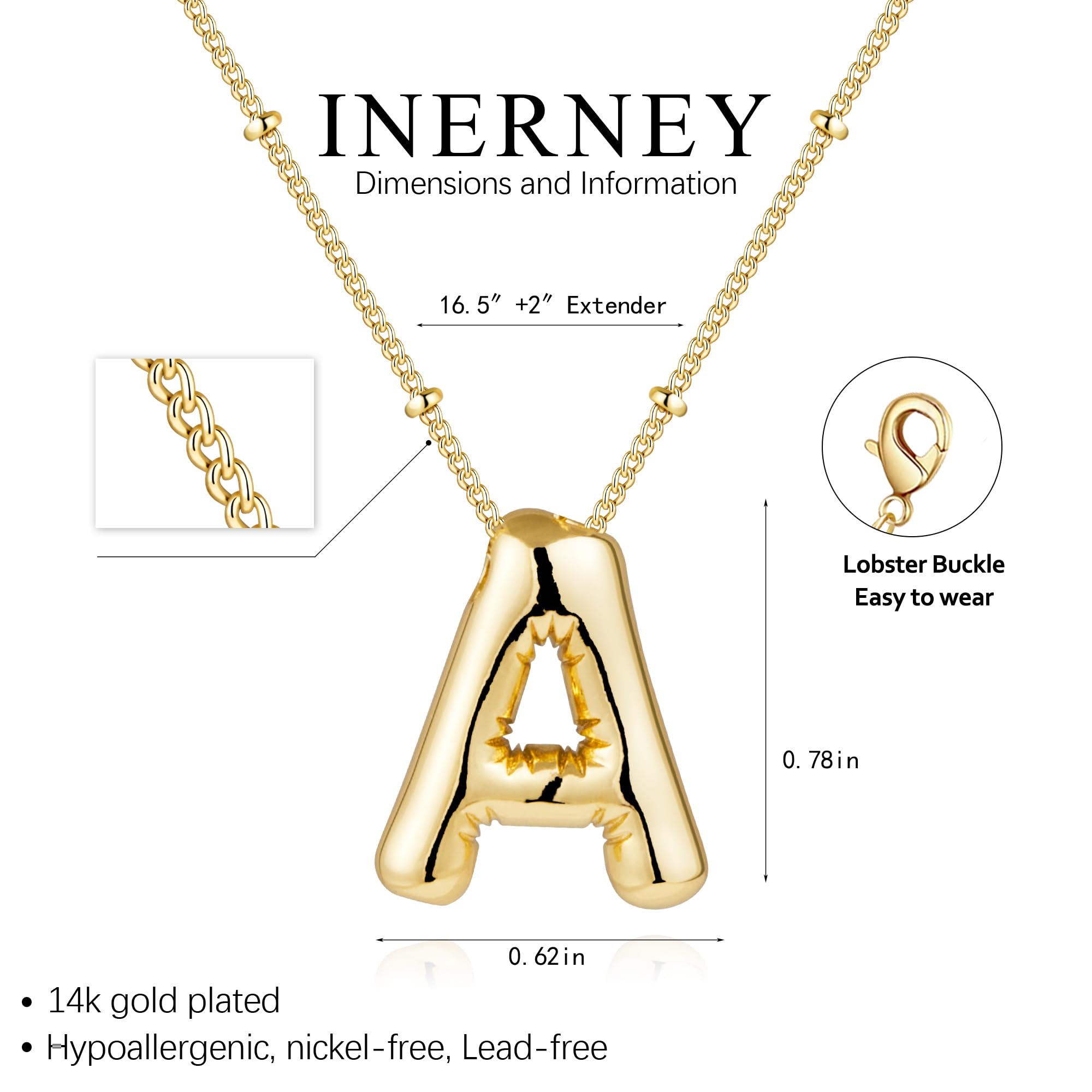 Inerney Gold Bubble Letter Necklace Initial Necklaces for Women, Chunky 14K Plated Balloon Initials, Trendy Charm Non Tarnish Custom Name A Pendant Jewelry Gifts for Mom