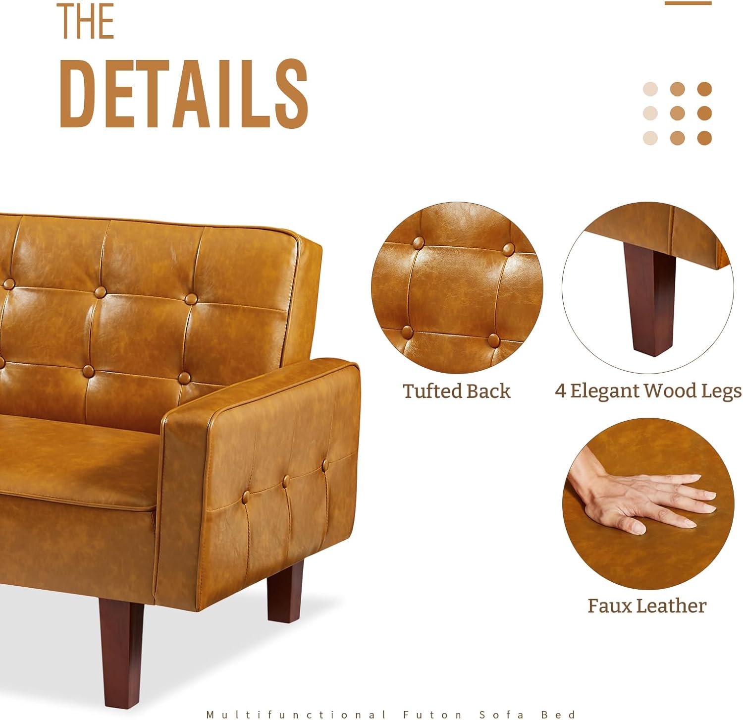 | Item Type Name | Futon Sofa Bed, Modern Convertible Faux Leather Sleeper Couch with Armrests for Studio, Office, Apartment, Compact Living, Game Room, Overnight Guests, Retro Brown |