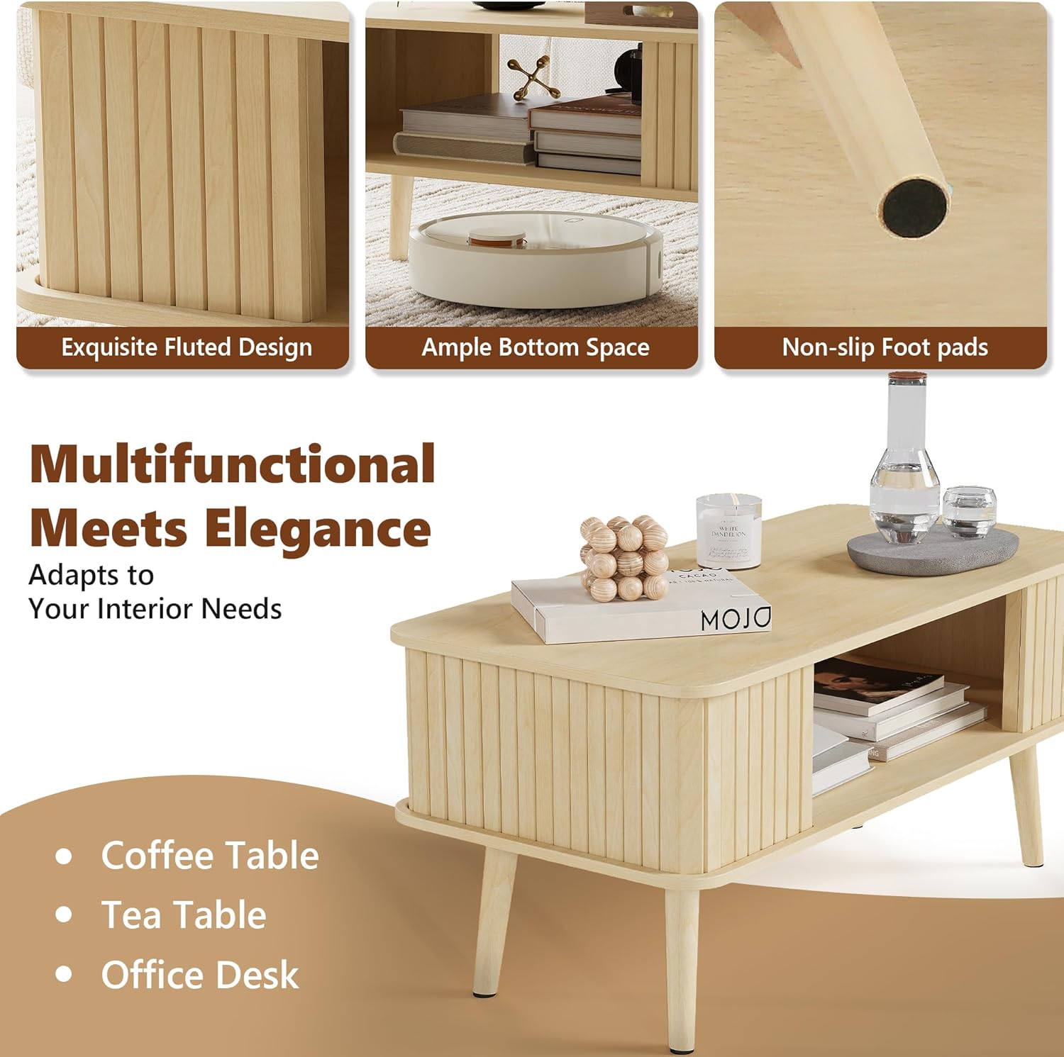 - 【2-Tier Storage for Organized】This rectangle coffee table features a spacious tabletop for drinks, books, or decorative items, while the second tier provides half-open front and back storage. The thoughtful two-layer layout keeps your living room tidy and makes essentials easy to reach.