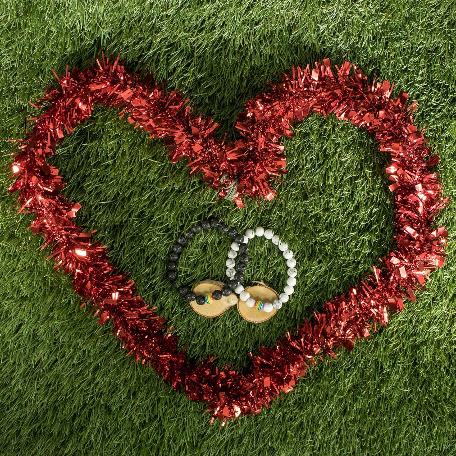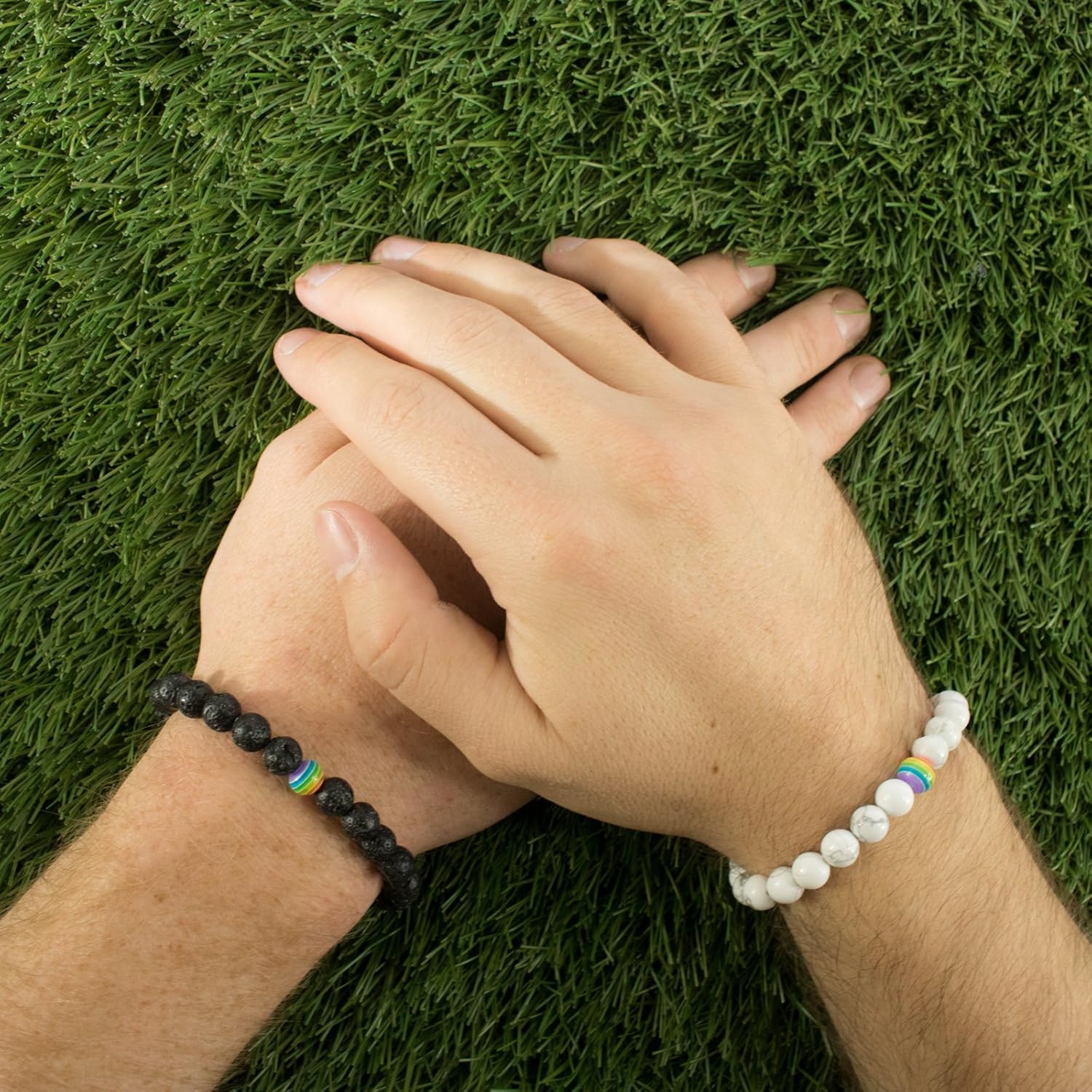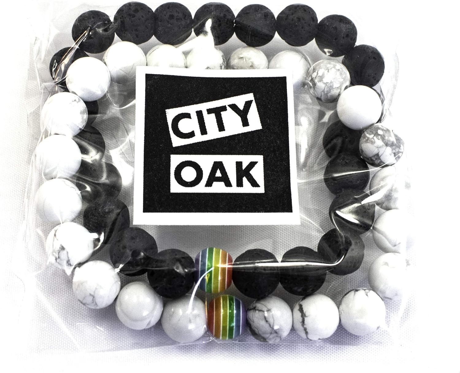LGBT Relationship Bracelet | 2 Pieces | White Howlite, Black Matte Agate, Rainbow Resin | Oil Diffuser Beads | Gay Couples Strong Cord | Handmade | Love is Colorful