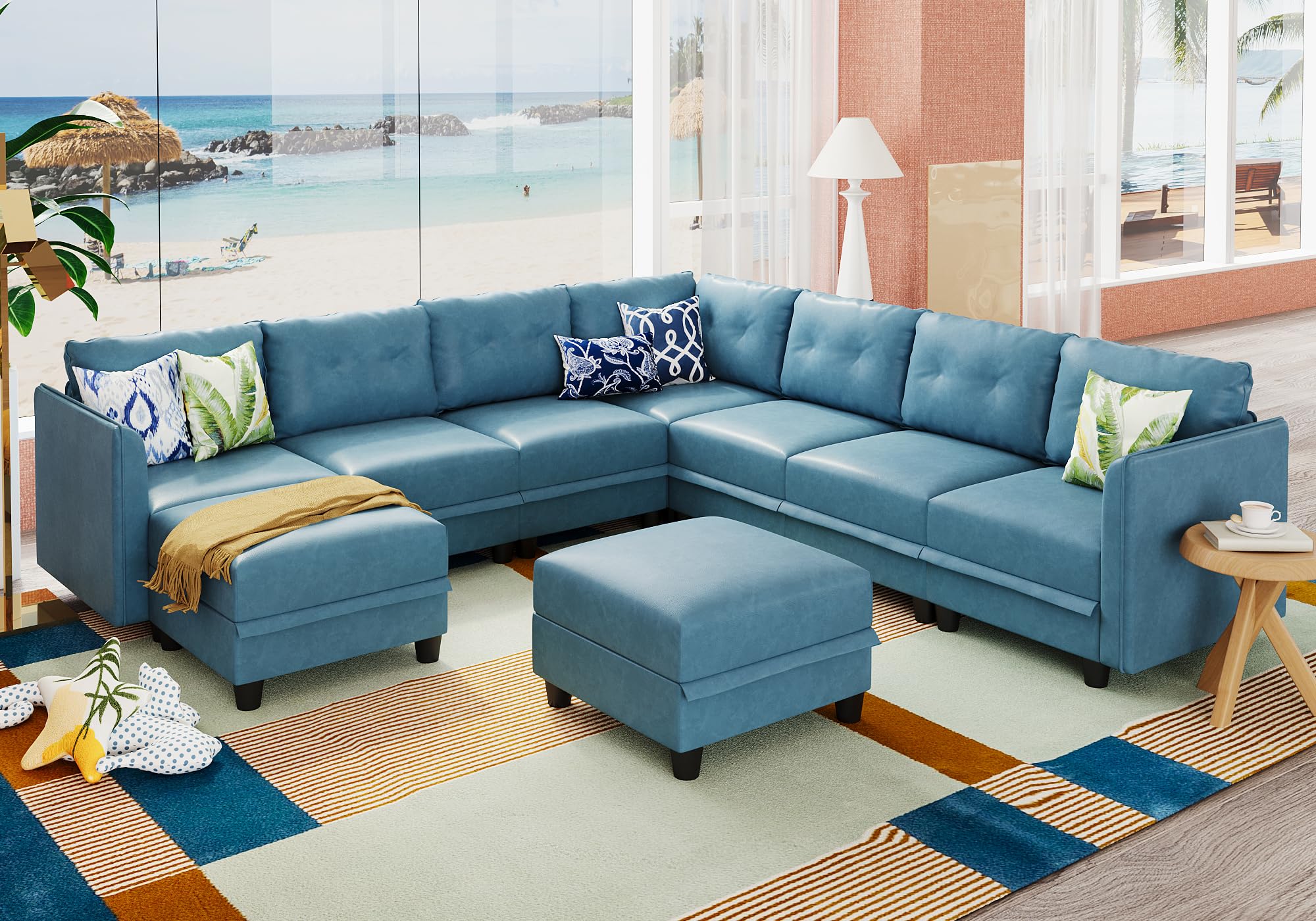 LLappuil Modular Sectional Sofa, Oversized U Shaped Sofa with Storage, Sectional Couch for Living Room, Faux Leather Fabric Waterproof Sofa, 7 Seats with Ottoman, Dark Grey