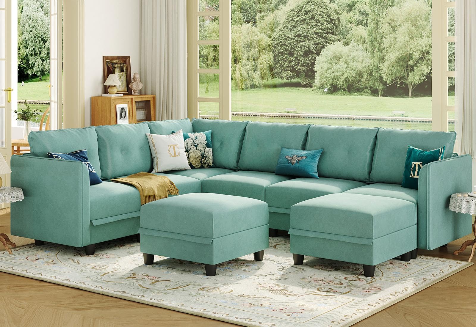 - Large Storage Space: Modular Couch has hidden storage space under each seat, with storage size of 20.5" (W) * 20.5" (D) * 6.3" (H). This fully saves space and makes your home look bigger and neater. The weight of each seat is 300 LB