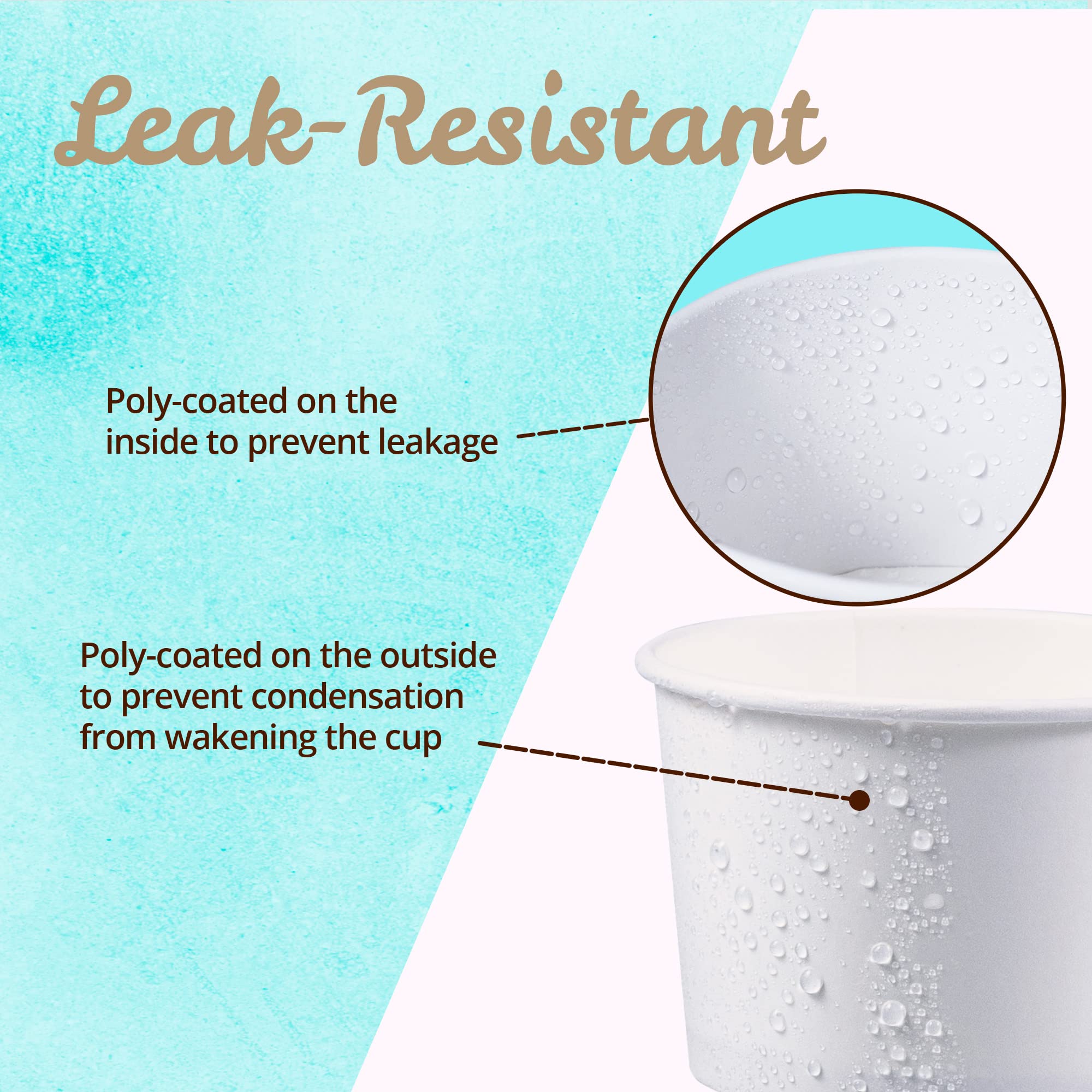 - LEAK-RESISTANT CONSTRUCTION: Each cup is made of sturdy paperboard that are polyethylene coated on both sides for superb leak resistance. Plus, it is also conveniently priced for single use and can be easily disposed after consumption.
