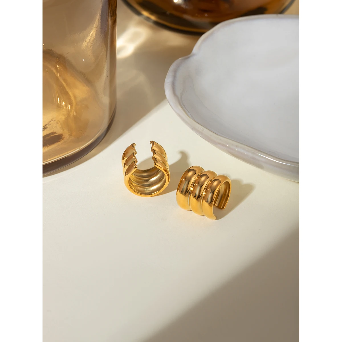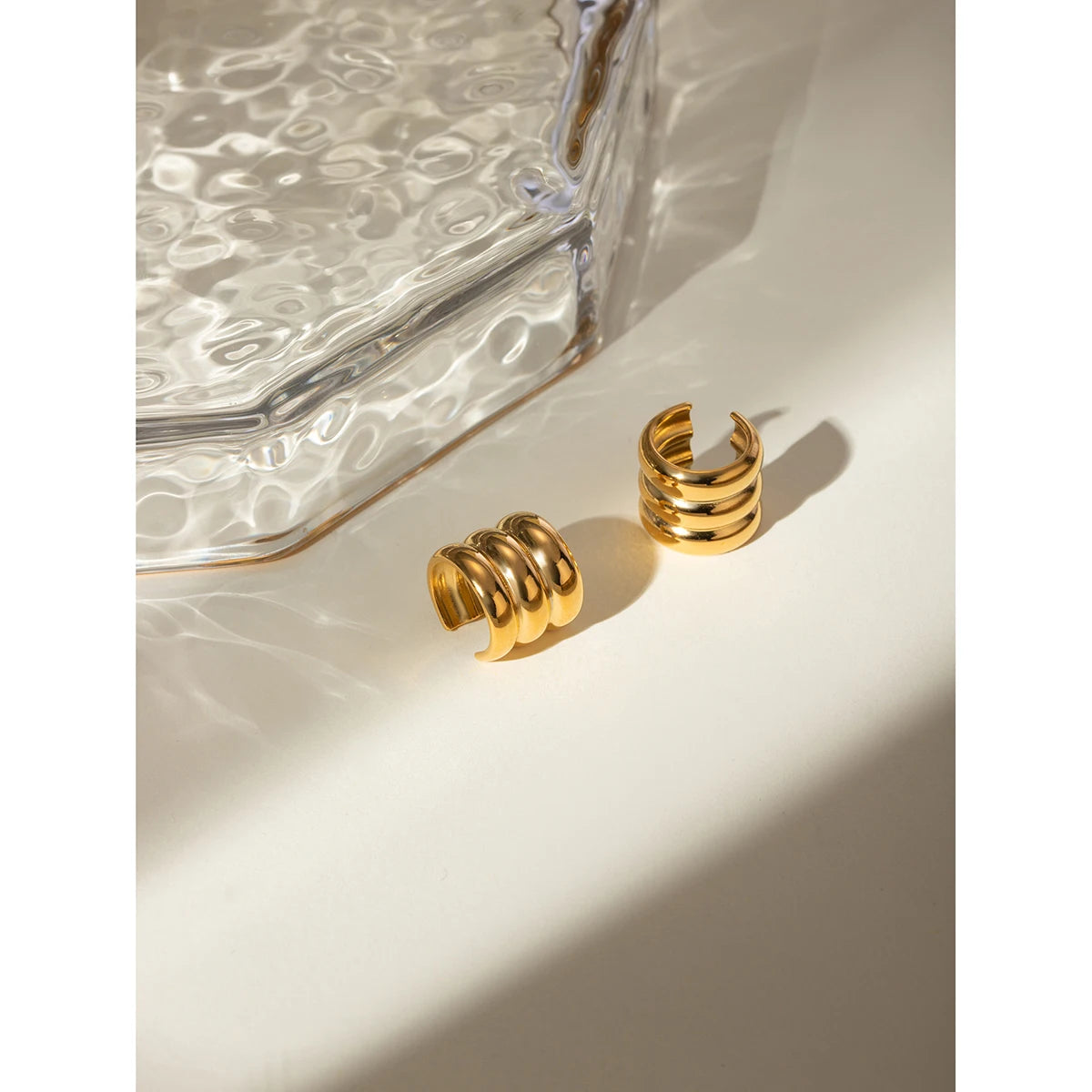 Minimalist 18k Gold Plated Light Cozy Three Layers Wide-sided Ear Clips Women Charming Stainless Steel Statement Jewelry