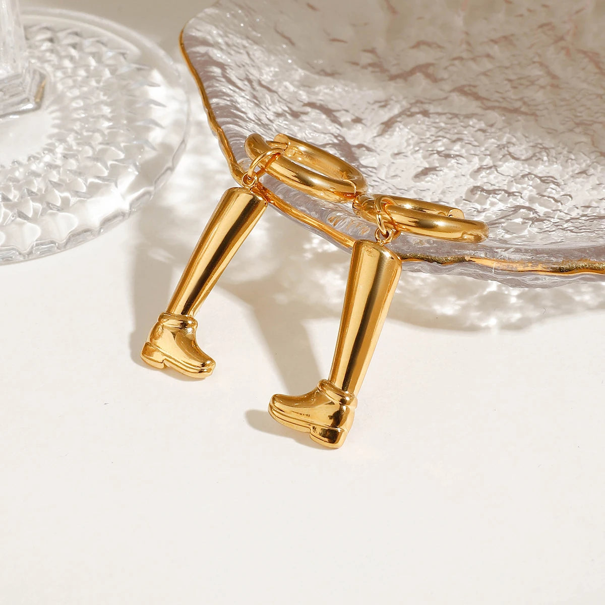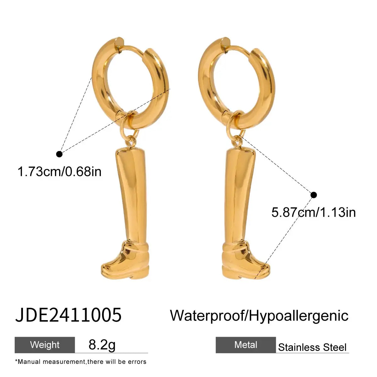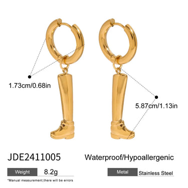 Crafted from high-quality stainless steel, these earrings are both anti-allergic and rust-proof, ensuring they remain as dazzling as the day you got them. The smooth boots-shaped pendant adds a charming and distinctive flair, making these earrings a standout accessory for fashion-forward women.