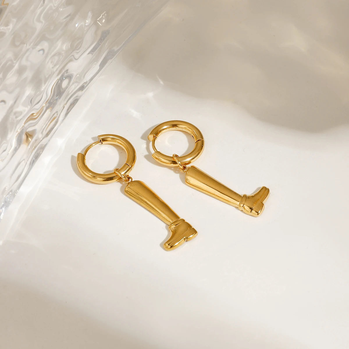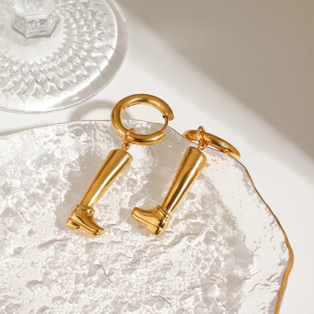 Minimalist 18k Gold Plated Stainless Steel Smooth Boots Shaped Pendant Earrings