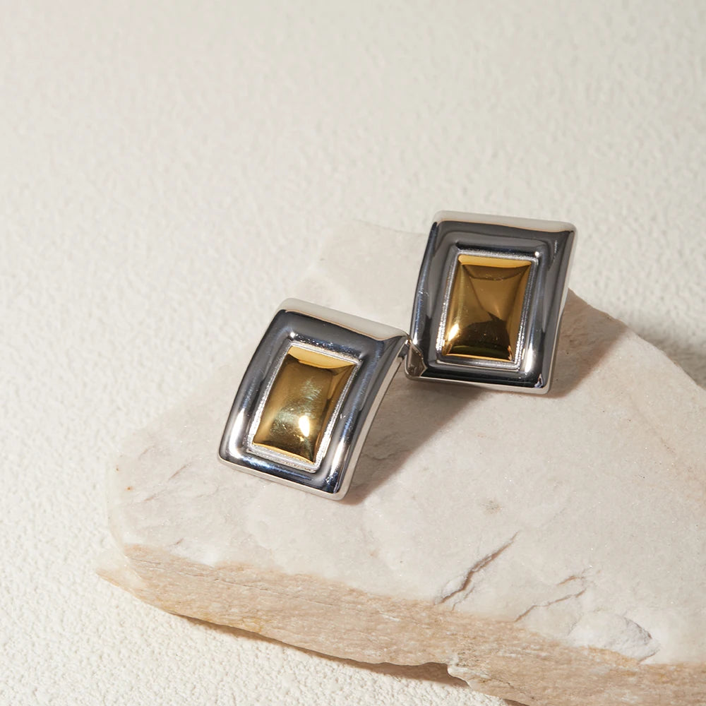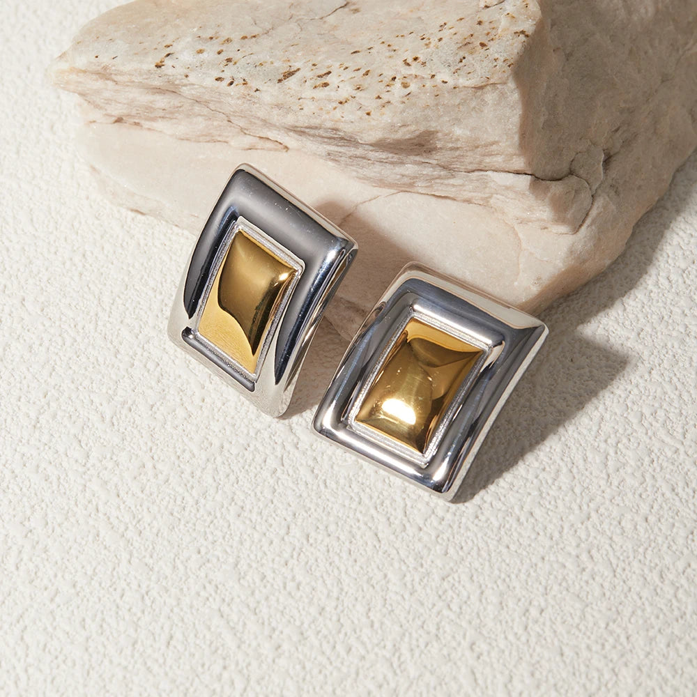 Minimalist 18K Gold Plated Statement Stainless Steel Rectangular Matching Color Earrings Creative Exclusive Personalized Jewelry