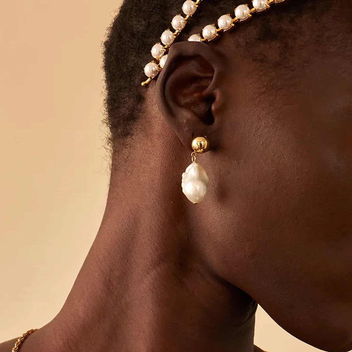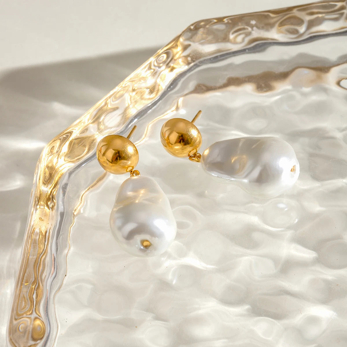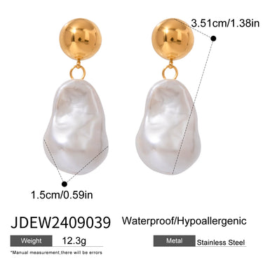 Crafted with stainless steel, these earrings are rust-proof and hypoallergenic, ensuring long-lasting wear without irritation. The 18k gold plating adds a luxurious touch, while the Baroque glass pearls create a unique and artistic look that never goes out of style.