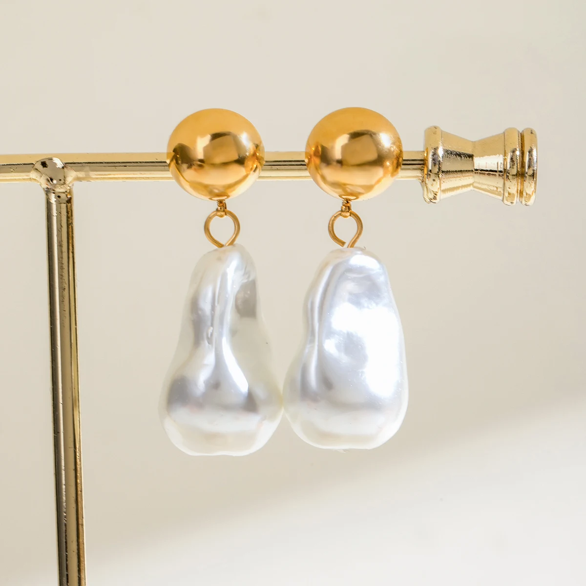 Minimalist 18k Gold Plated Vintage Baroque Glass Pearl Earrings Stainless Steel Women Rust Proof Exquisite Jewelry Bijoux