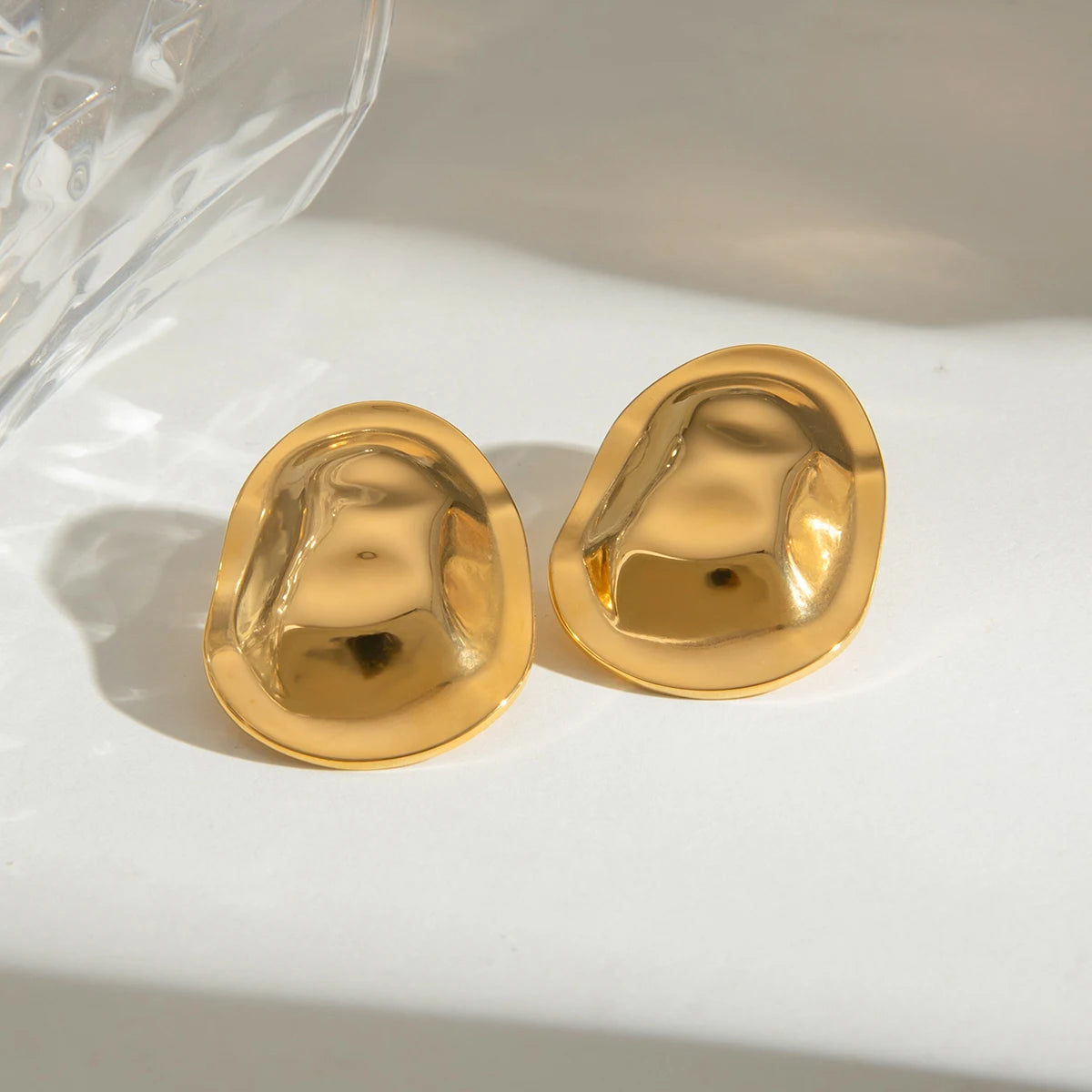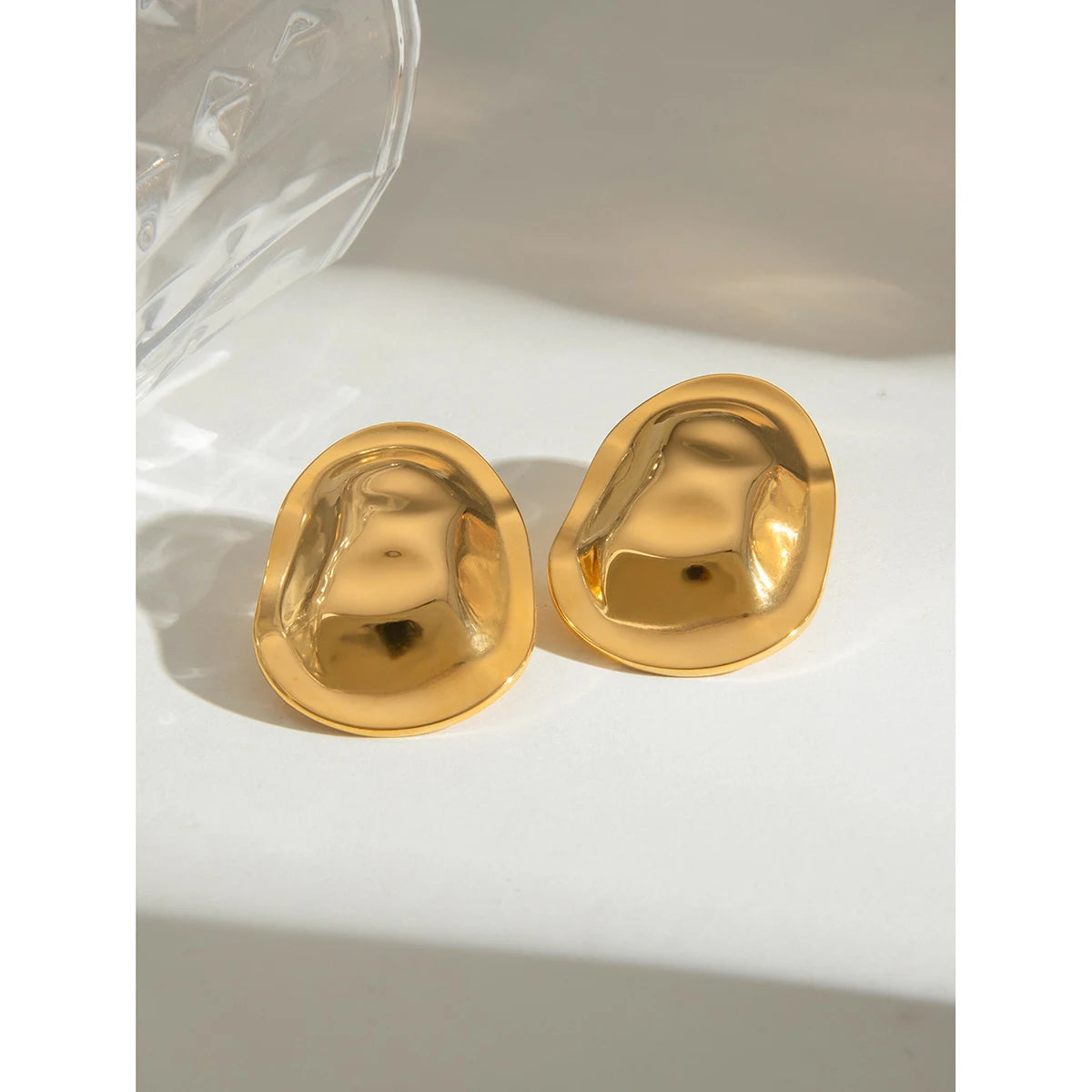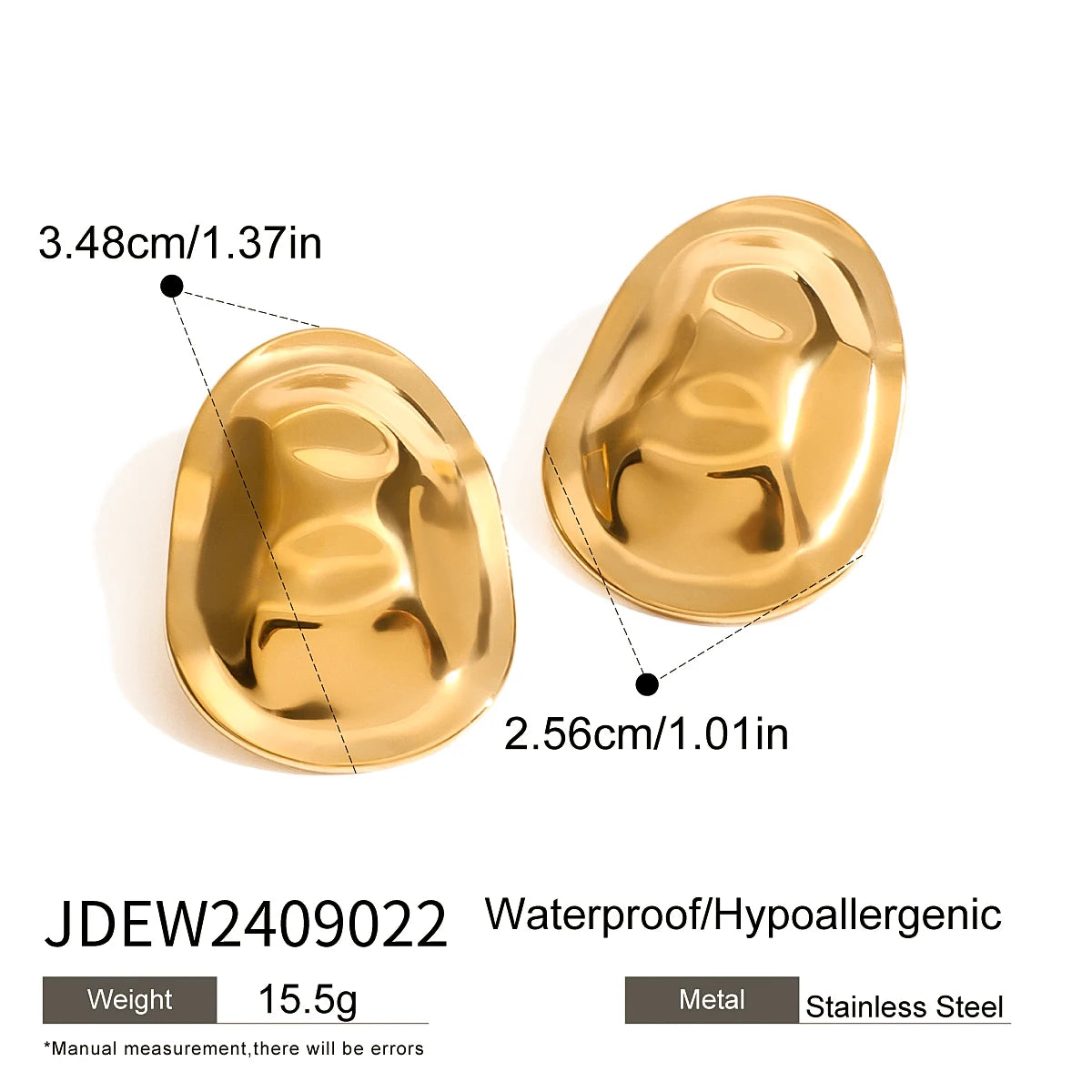 Minimalist 18k Stainless Steel Vintage Irregular Hammer Grain Stud Earrings Women Statement Texture Daily Stylish Jewelry