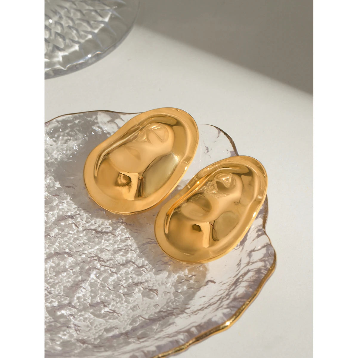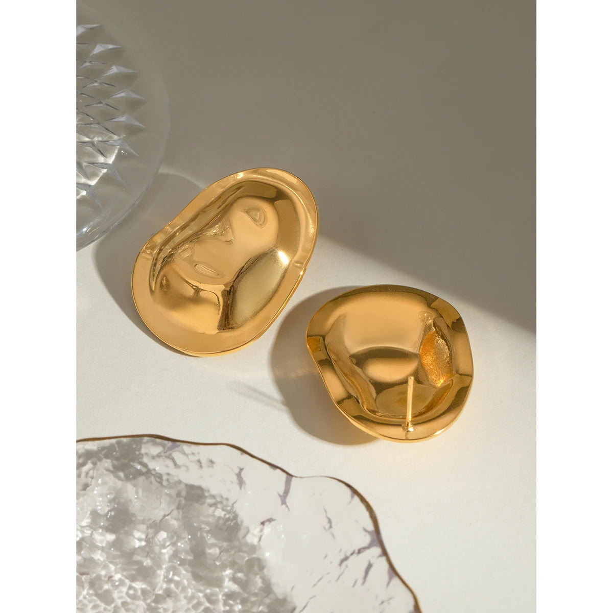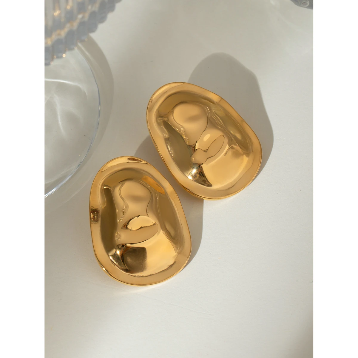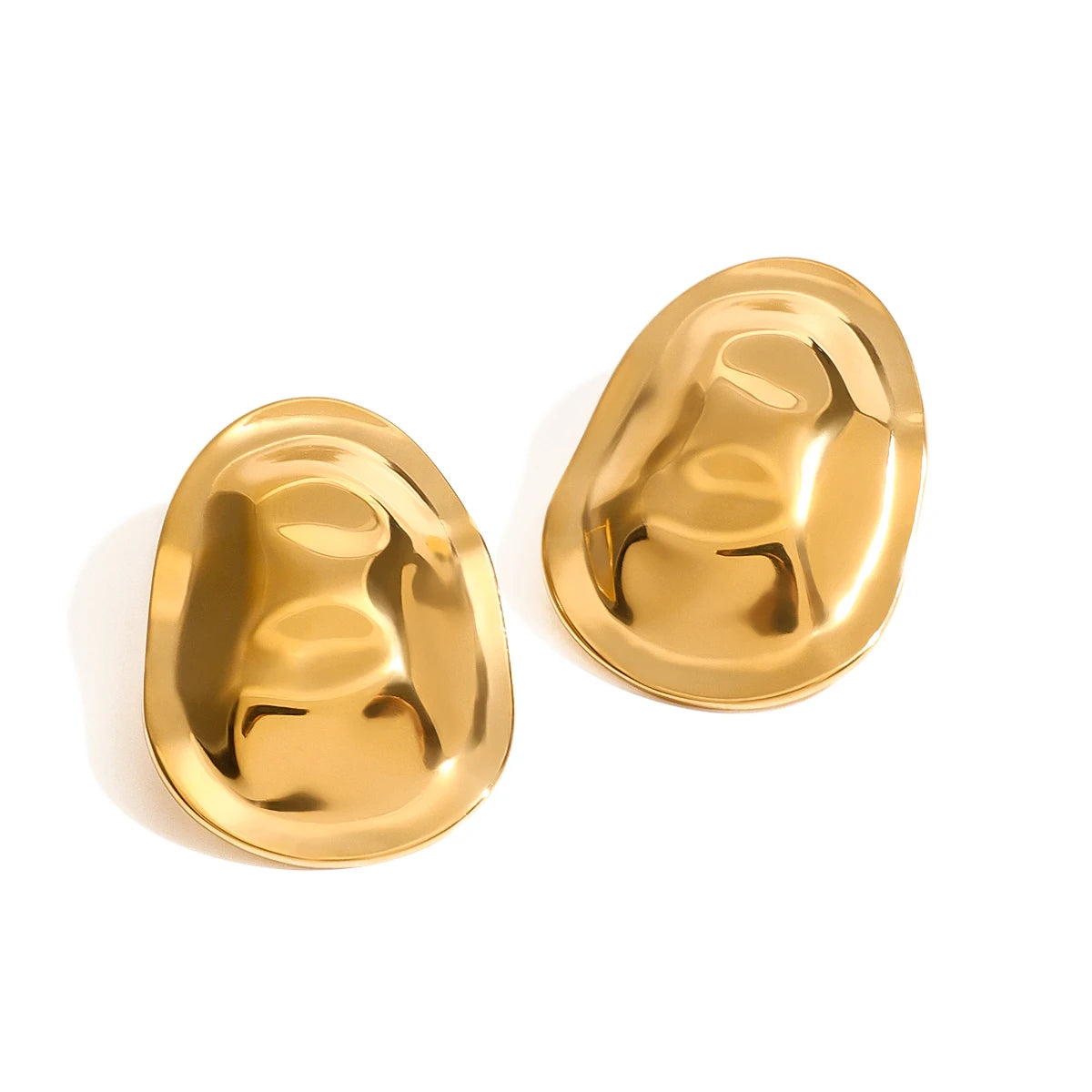 Minimalist 18k Stainless Steel Vintage Irregular Hammer Grain Stud Earrings Women Statement Texture Daily Stylish Jewelry