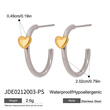 Minimalist Gold Silver Color Matching Stainless Steel Heart Shaped Earrings Women Anti Allergic Rust Proof Stylish Jewelry