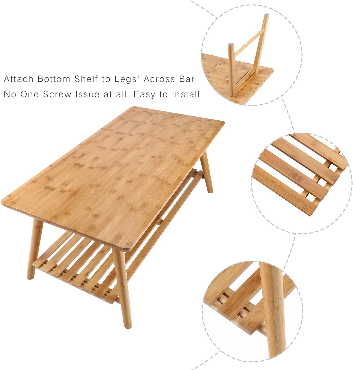 - Trends of minimalist living spaces- The coffee table is made by bamboo, both the smoothy top and the bottom shelf are. As sustainable furniture, it keeps the real bamboo image, which can give your room a natural and fresh feeling.