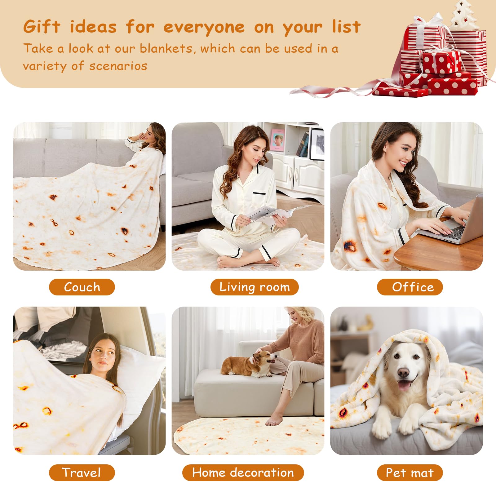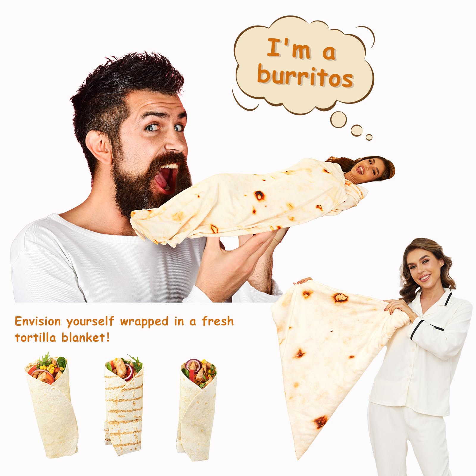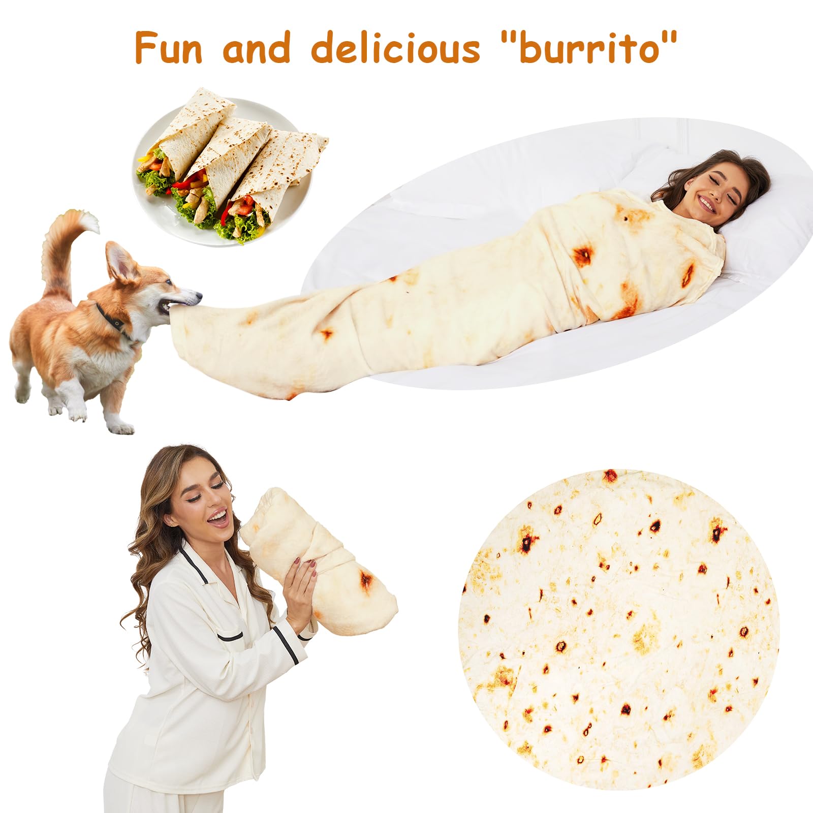 - 【More Than a Blanket】: Transform your relaxation time into a delightful experience – envision yourself wrapped in a fresh tortilla blanket, feeling the warmth of real burritos. Watch your neighbors turn green with envy – they'll want to be the Tortilla too