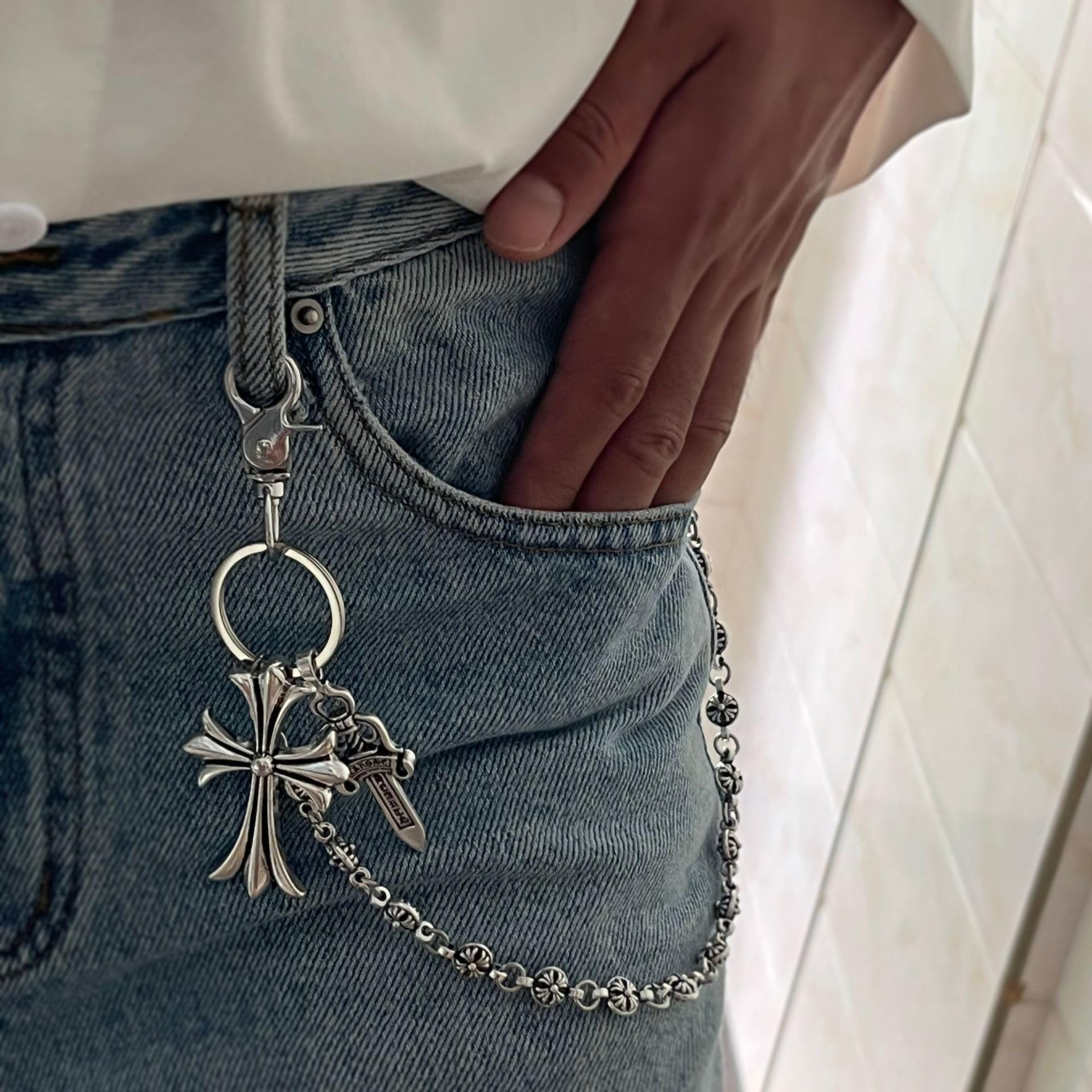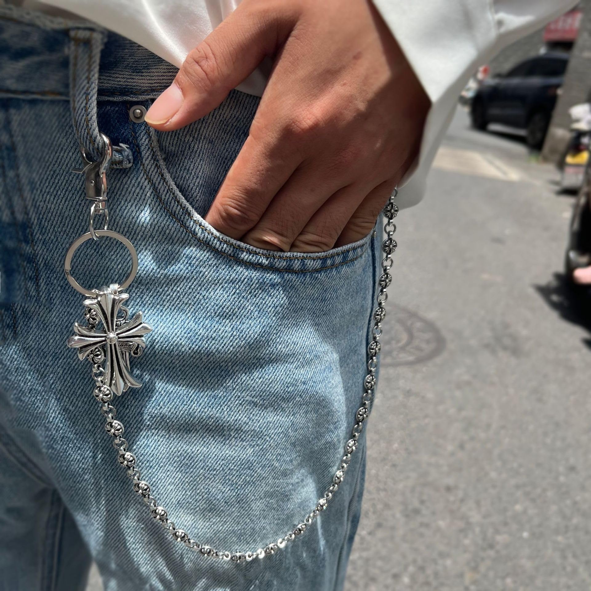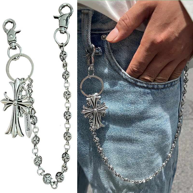 Pants Chain for Men Women,Biker Cross Chain Wallet,Cool Punk Trousers Pocket Belt Key Chains for Hip Hop Rock Jeans (cross)