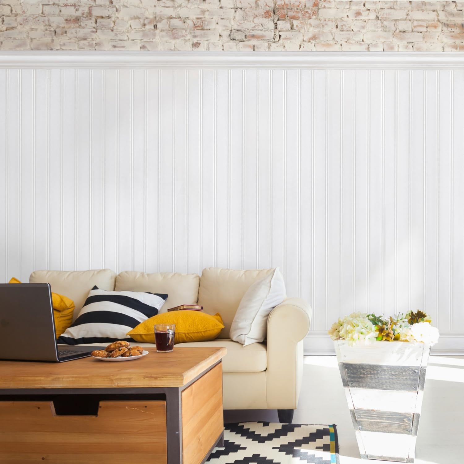 Plastpro Accent Wall Panels - 8 Foot Reversible PVC Wall Panels for Interior Wall Decor, Easy to Install Wainscoting Panels for Wall Home Decor - Home Improvement White PVC Panels for Walls (7 Piece)