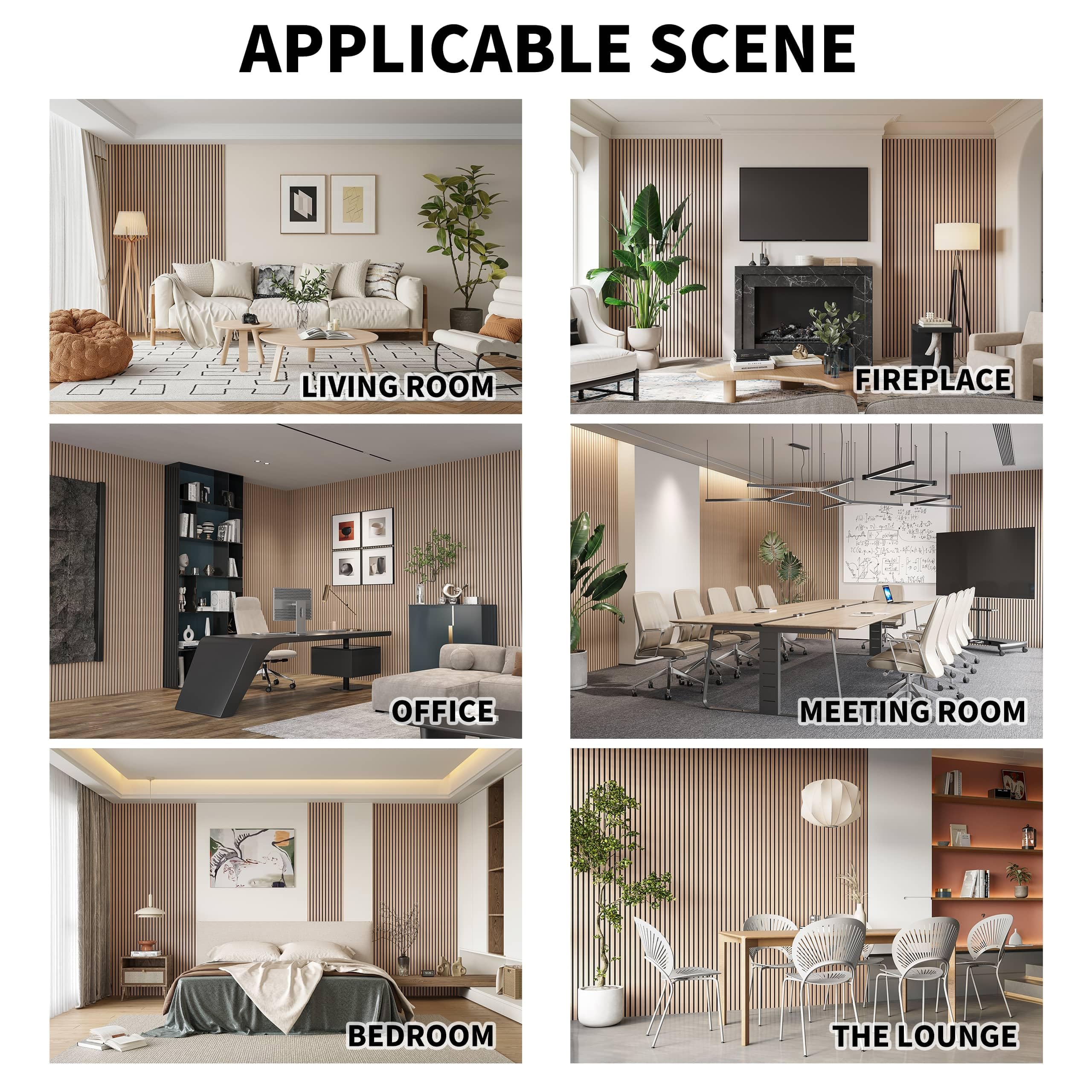 - VERSATILITY AT ITS CORE: Tailored for the modern aesthetic, wood slat wall panels effortlessly adapt to diverse spaces. Ideal for living rooms, audio-visual spaces, conference rooms, or any public area seeking aesthetics and sound absorption
