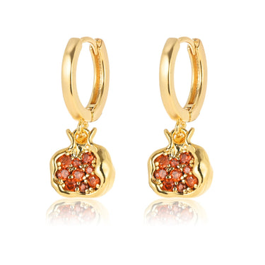 Pomegranate Earrings Necklace for Women 18k Gold Plated Cubic Zirconia Inlay Red Pomegranate Pendant Necklace Gold Hoop Earrings Jewelry Set