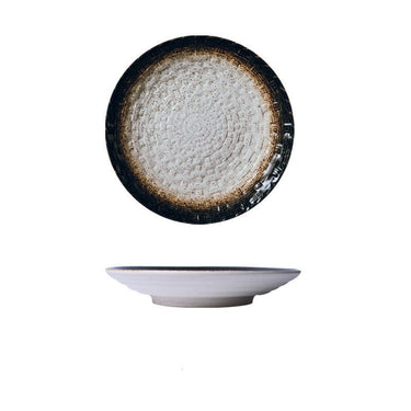 Each plate is meticulously made using a colour glaze process, resulting in a smooth and glossy finish. Available in three enchanting colour classifications - retro black pearl woven, poetic twelfth lunar month woven, and fashion sesame gold woven - this plate will add a touch of elegance to any table setting.