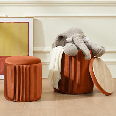 【Comfortable experience】The upholstered seat of this round ottoman with storage is made of high density sponge, which feels skin-friendly to the touch and is easy to clean even with animal fur.