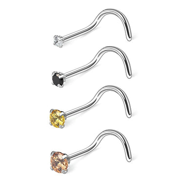 Ruifan 18G 1.5mm 2mm 2.5mm 3mm 3.5mm 4mm Round Diamond CZ Nose Screw Studs Rings Piercing Jewelry 4-12PCS