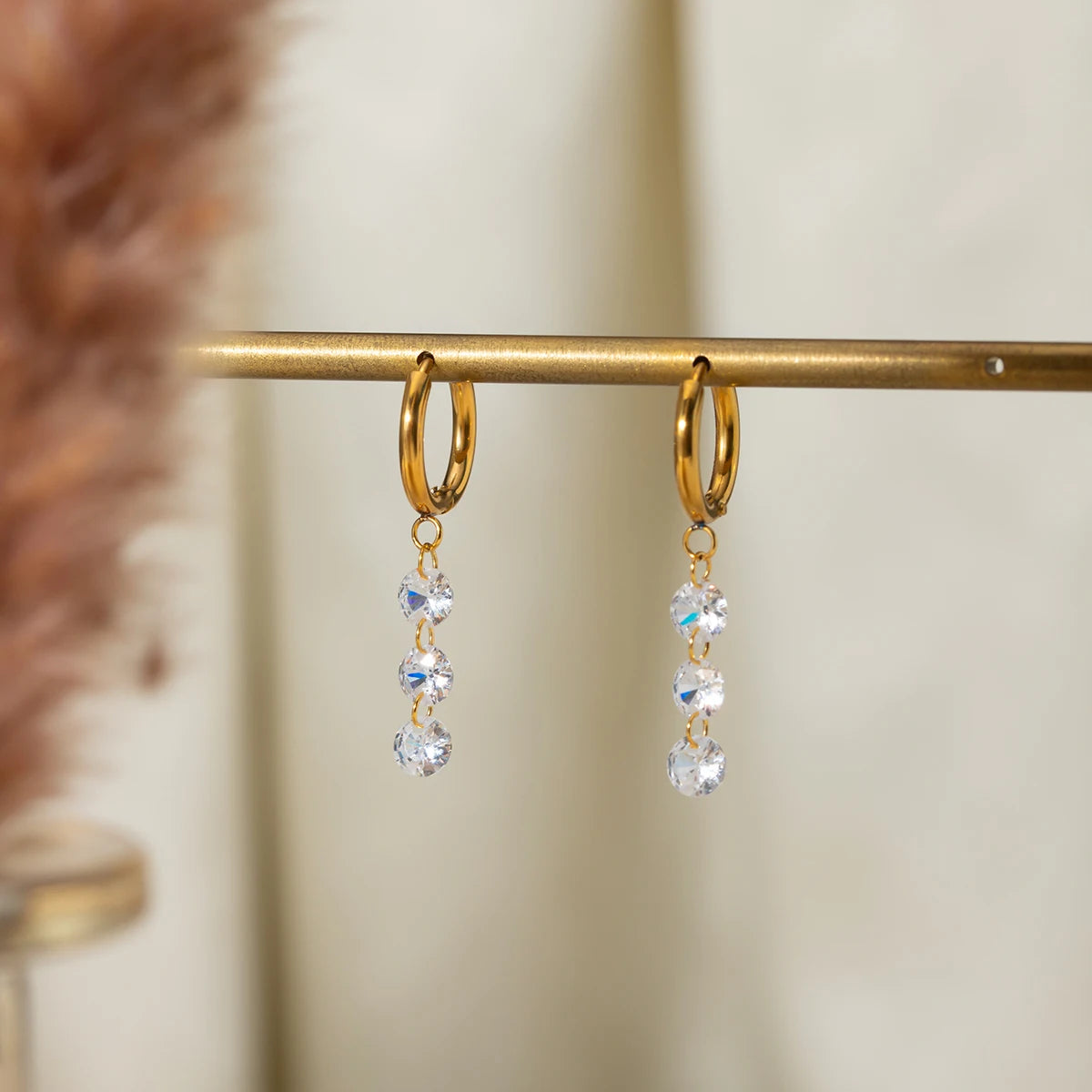 Stainless Steel 18K Minimalist Geometric Rust Proof Fringe Earrings Inlaid With Zircon Free Temperament Charm Jewelry Women