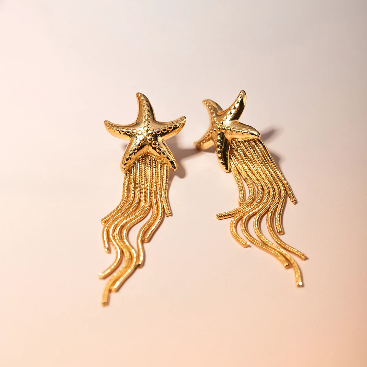 Crafted from high-quality stainless steel with 18K PVD plating, these earrings are rust-proof, tarnish-resistant, and designed to last. The long chain tassel adds graceful movement, while the delicate starfish charm enhances the stylish and feminine appeal. Whether you wear them to a formal event or a casual outing, they will elevate your look effortlessly.