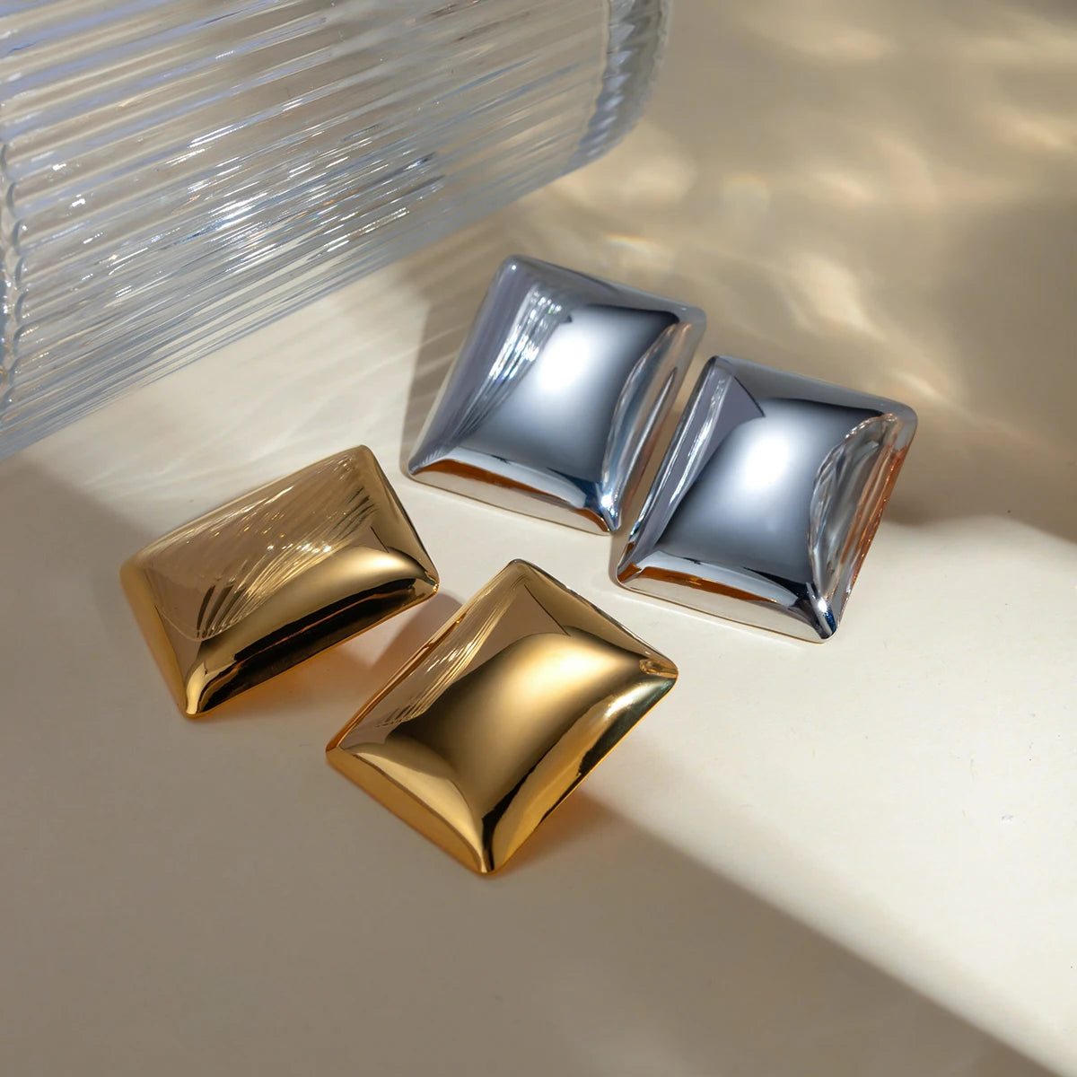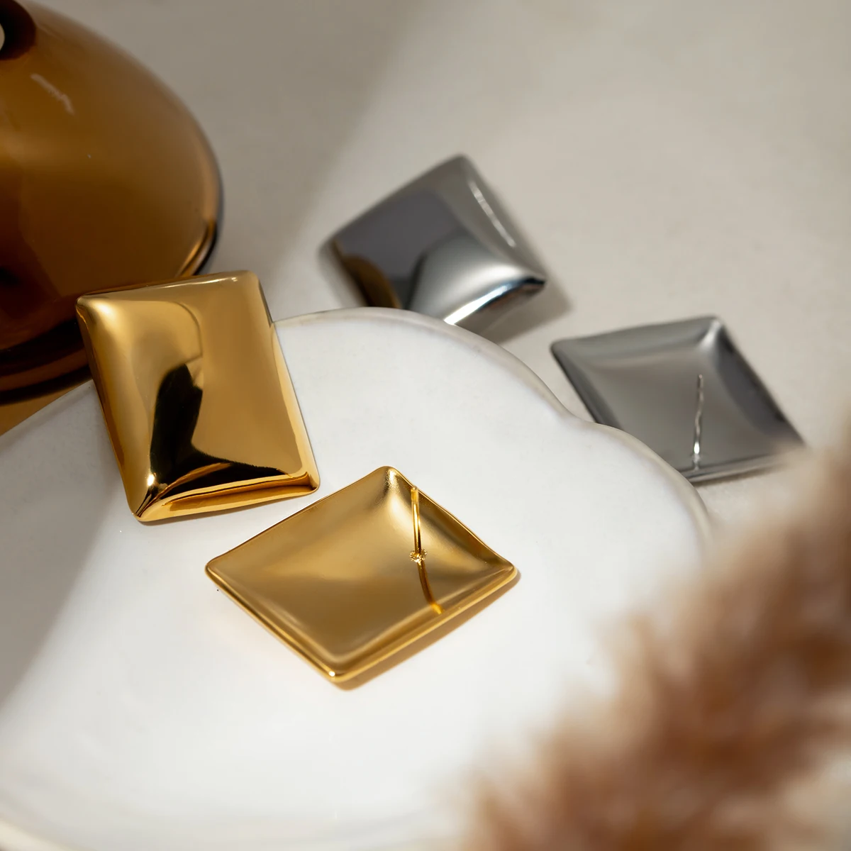 Stylish 18k Gold Plated Rust Proof Rectangular Stud Earrings - Statement Jewelry for Women