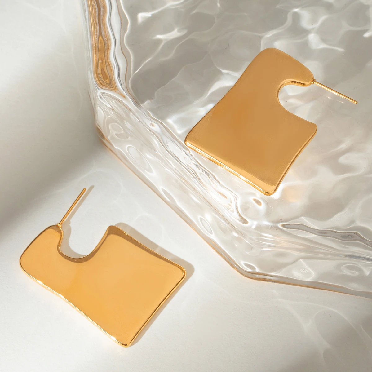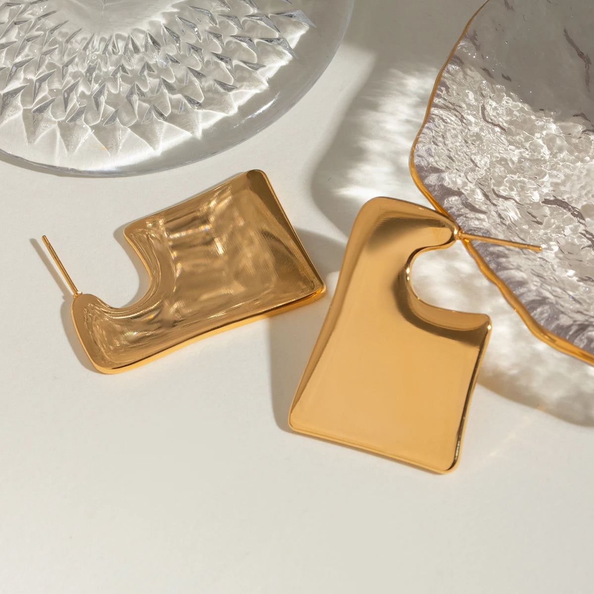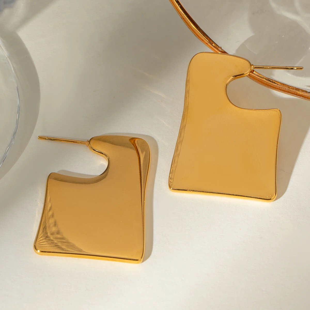 Stylish 18K Gold Plated Stainless Steel Simple Large Smooth Irregular Earrings Women Charms Water Resistant Chic Jewelry