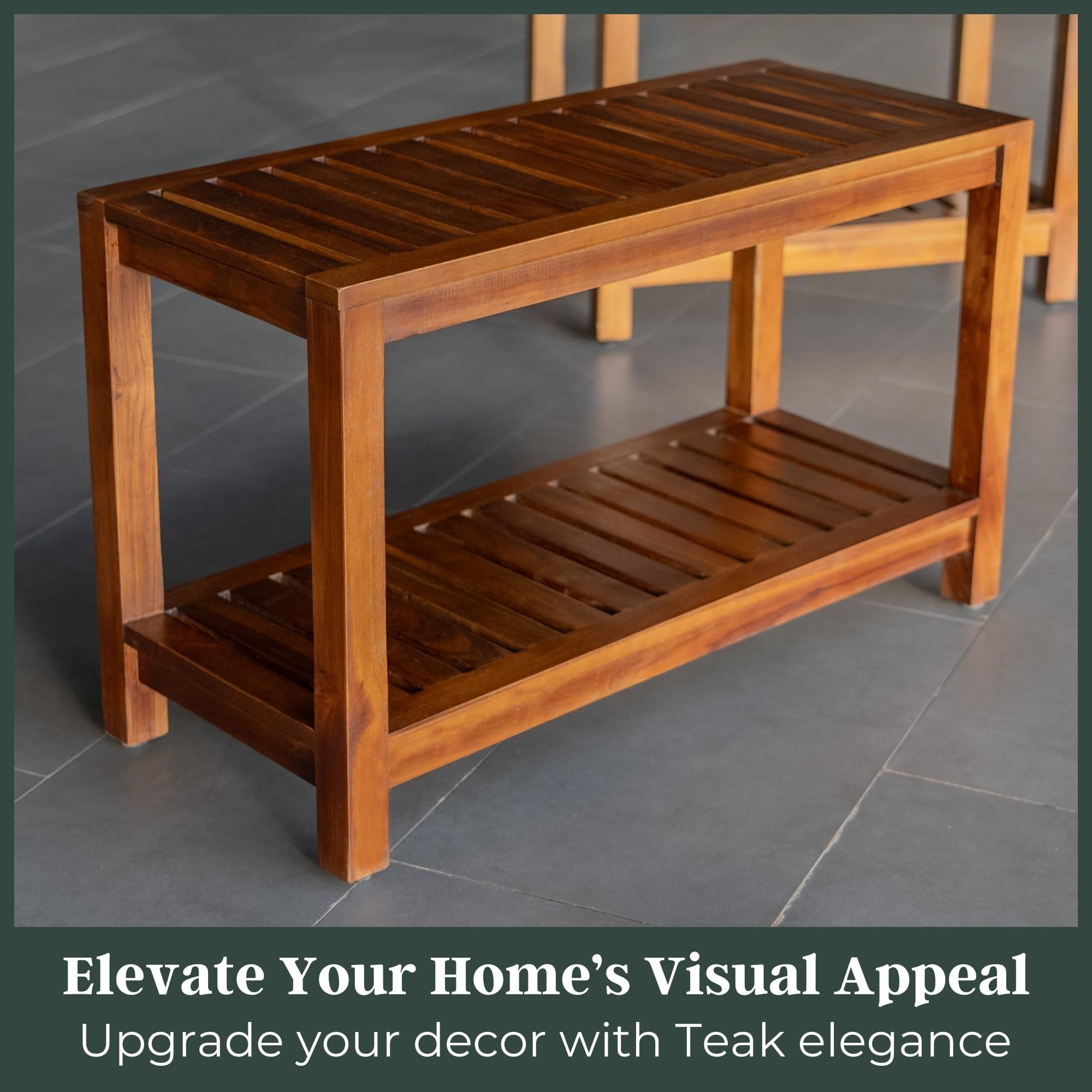 - 🌎 ECO-FRIENDLY CRAFTSMANSHIP: Crafted from responsibly harvested Teak wood, this Spa Bench supports eco-friendly practices. The Teak Garden Stool, Teak Bathroom Table, and Teak Shower Bench for inside the shower contribute to sustainable forestry, promoting environmental well-being.