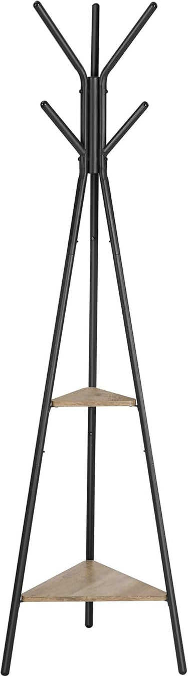 VASAGLE Coat Rack Freestanding, Coat Hanger Stand, Hall Tree with 2 Shelves, for Clothes, Hat, Bag, Industrial Style, Rustic Brown and Black URCR16BX