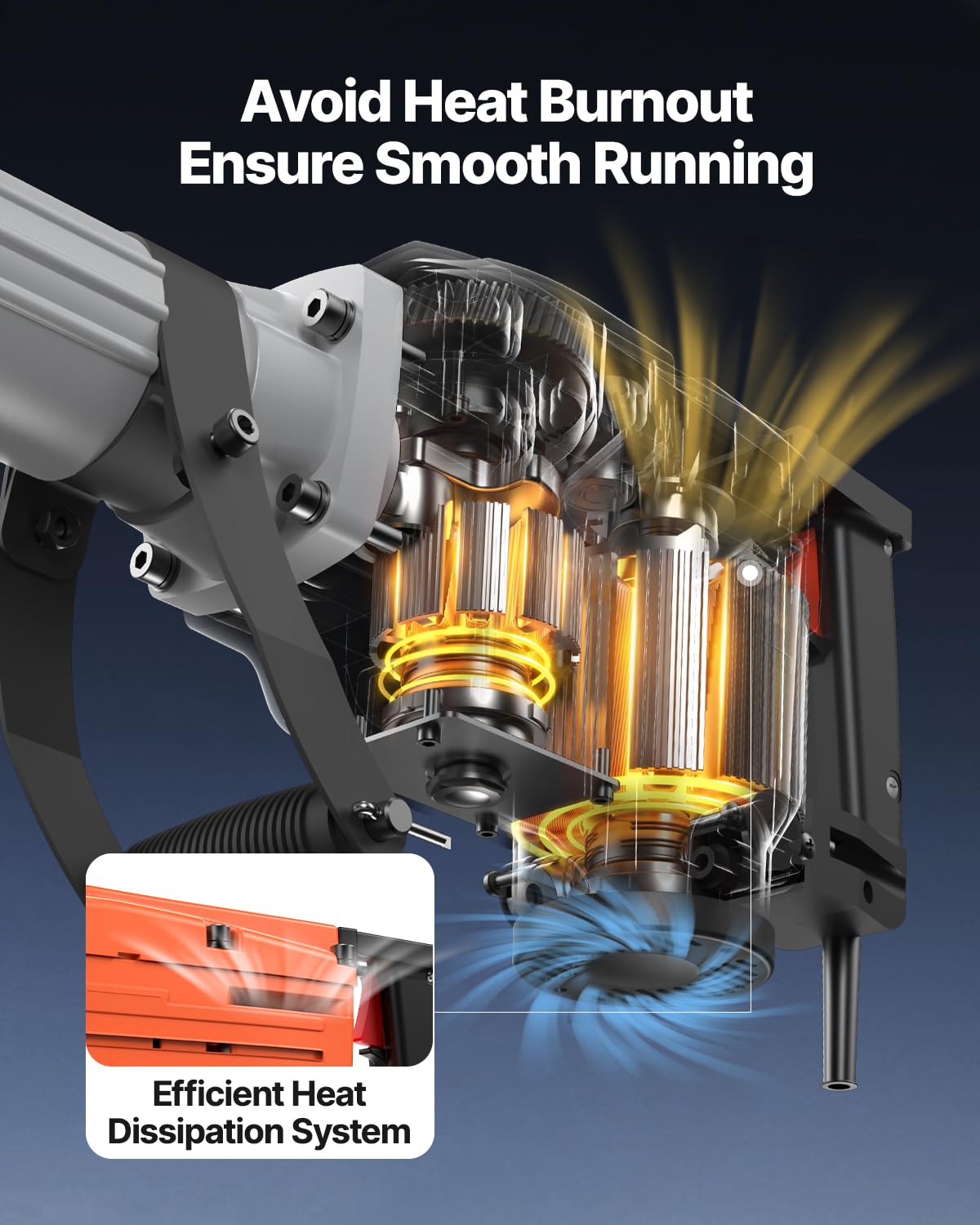 - 360°Rotary & Vibration-proof Handle: Adjustable 360 degree fore handle provides greater operator control that makes it easy to cater to different positions under varied circumstances. Its slip-proof rubber which greatly enhances friction and absorbs vibration to achieve full control of the electric hammer and a delightful work experience.