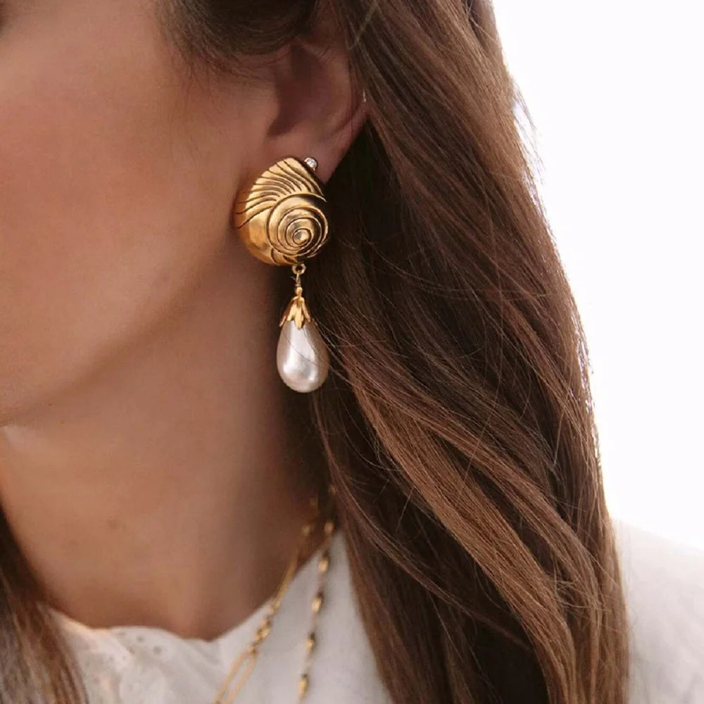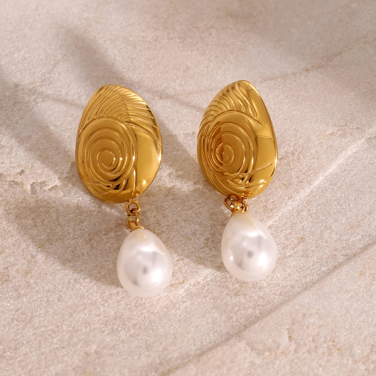 Brincos Personalizados Atraentes para Mulheres, em Aço Inoxidável Criativo 18K PVD à Prova de Ferrugem, Gota de Água do Mar com Rosca e Textura Ripada