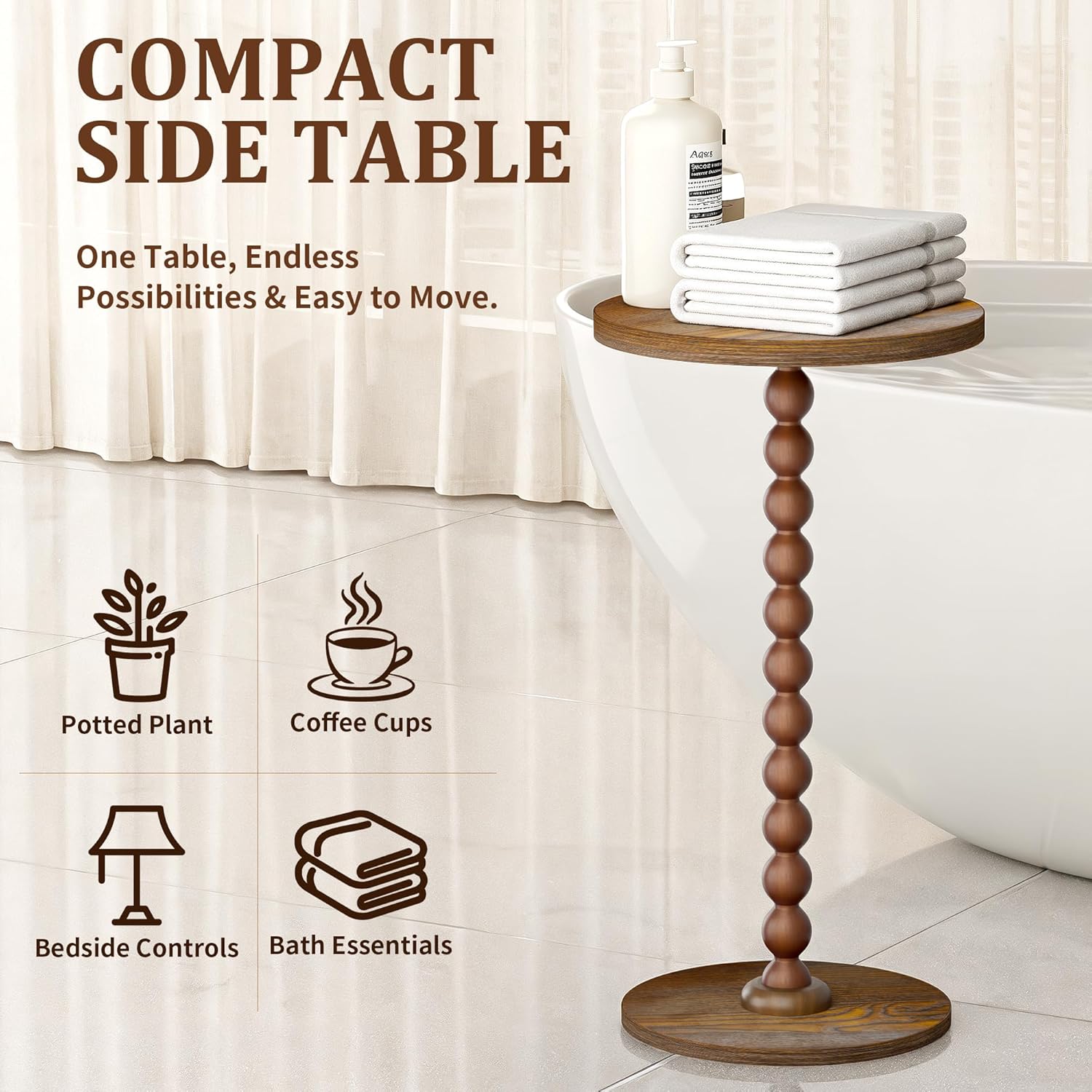 - Compact Size: Measuring 11.81" in diameter and 21.26" in height, this side table is compact, lightweight, and space-saving—effortless to place anywhere in your home. Perfect for the living room, bedroom, or bathroom, it’s ideal for holding remote controls, coffee, magazines, decorative items, and more