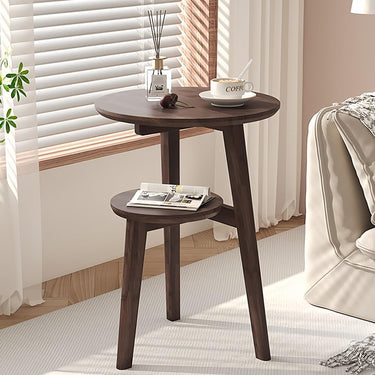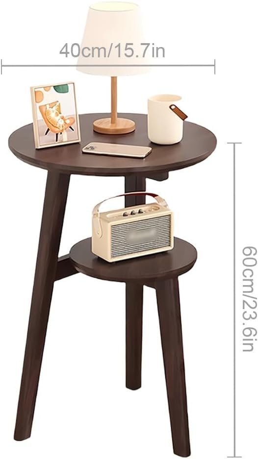 Solid Wood Round Side Table with 2 Open Shelves – Decorative Nightstand & Coffee Table for Bedroom, Living Room, or Study(Brown)