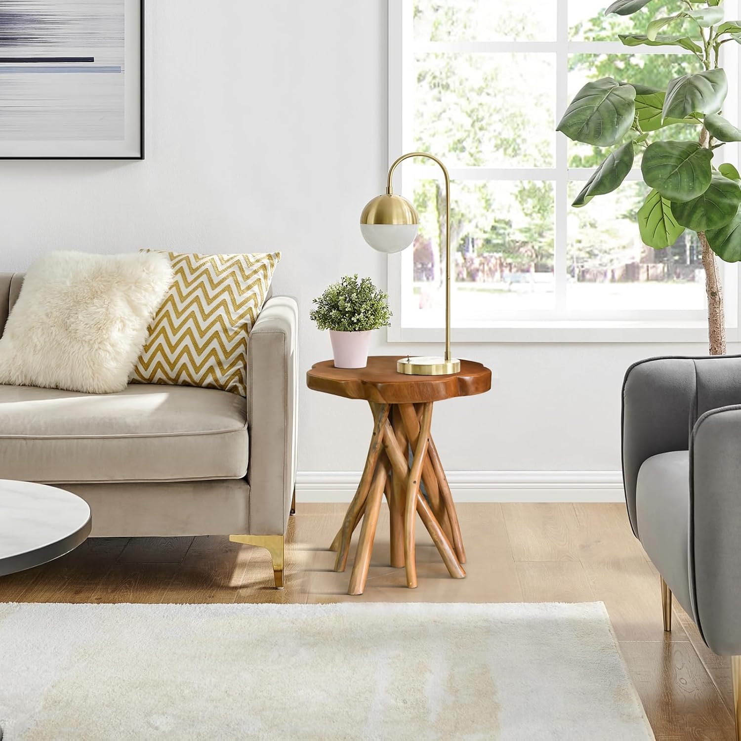 WELLAND Solid Teak Live Edge End Table,18" L x 18" W x 20" H Uniquie Side Table, Small Accent Table, Plant Stand for Living Room, Bedroom, Home Office