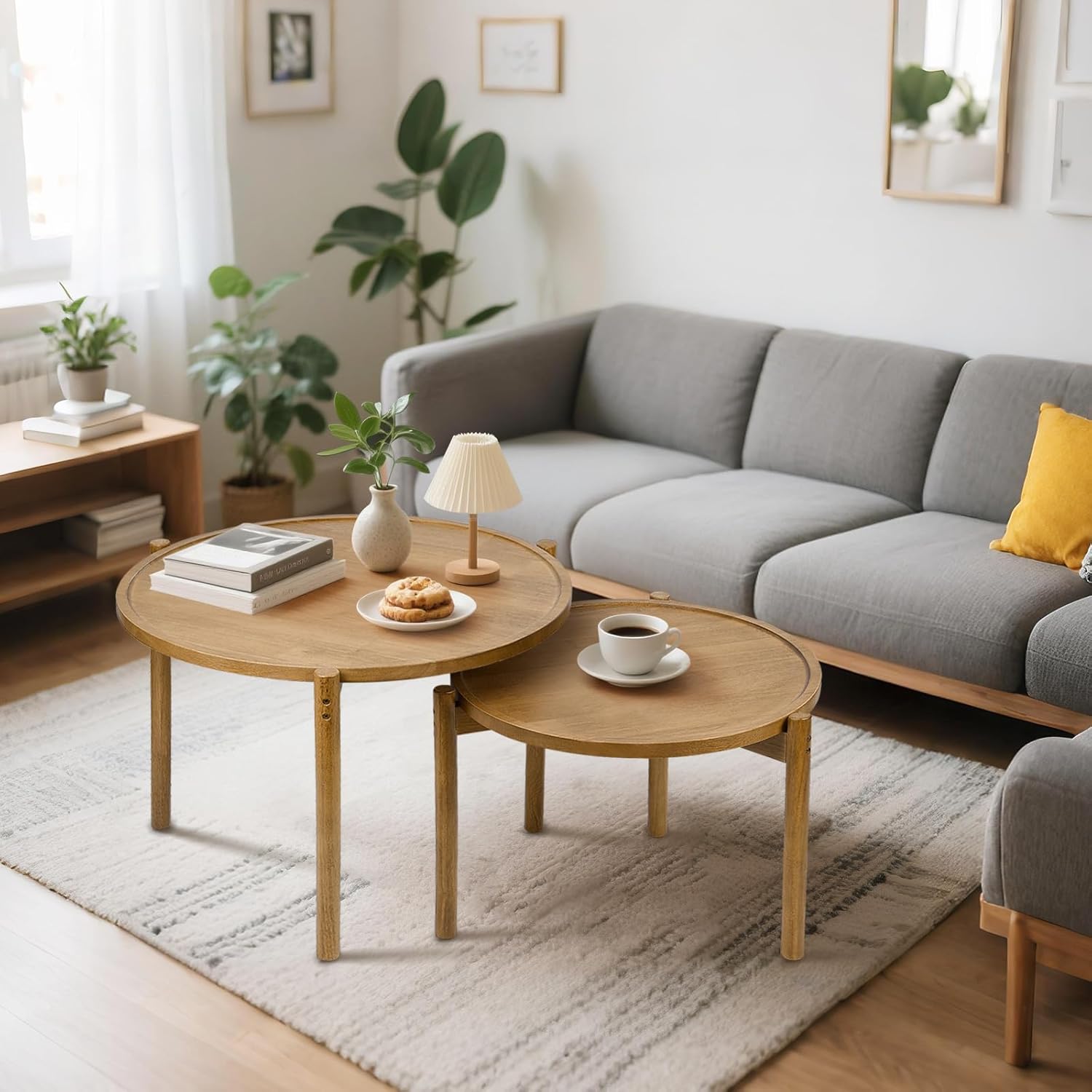 Wooden Round Nesting Coffee Tables Set of 2,Round End Table,Small Nesting Tables,Side Table,for for Living Room Bedroom Balcony by Solid Wood