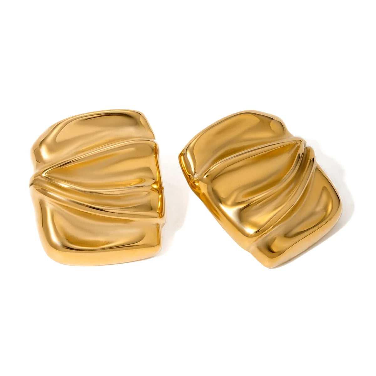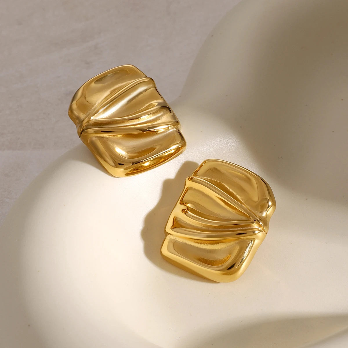Brincos Retangulares Plissados Minimalistas Geométricos de Moda Banhados a PVD 18K Aço Inoxidável Criativo Antialérgico Joia para Orelha