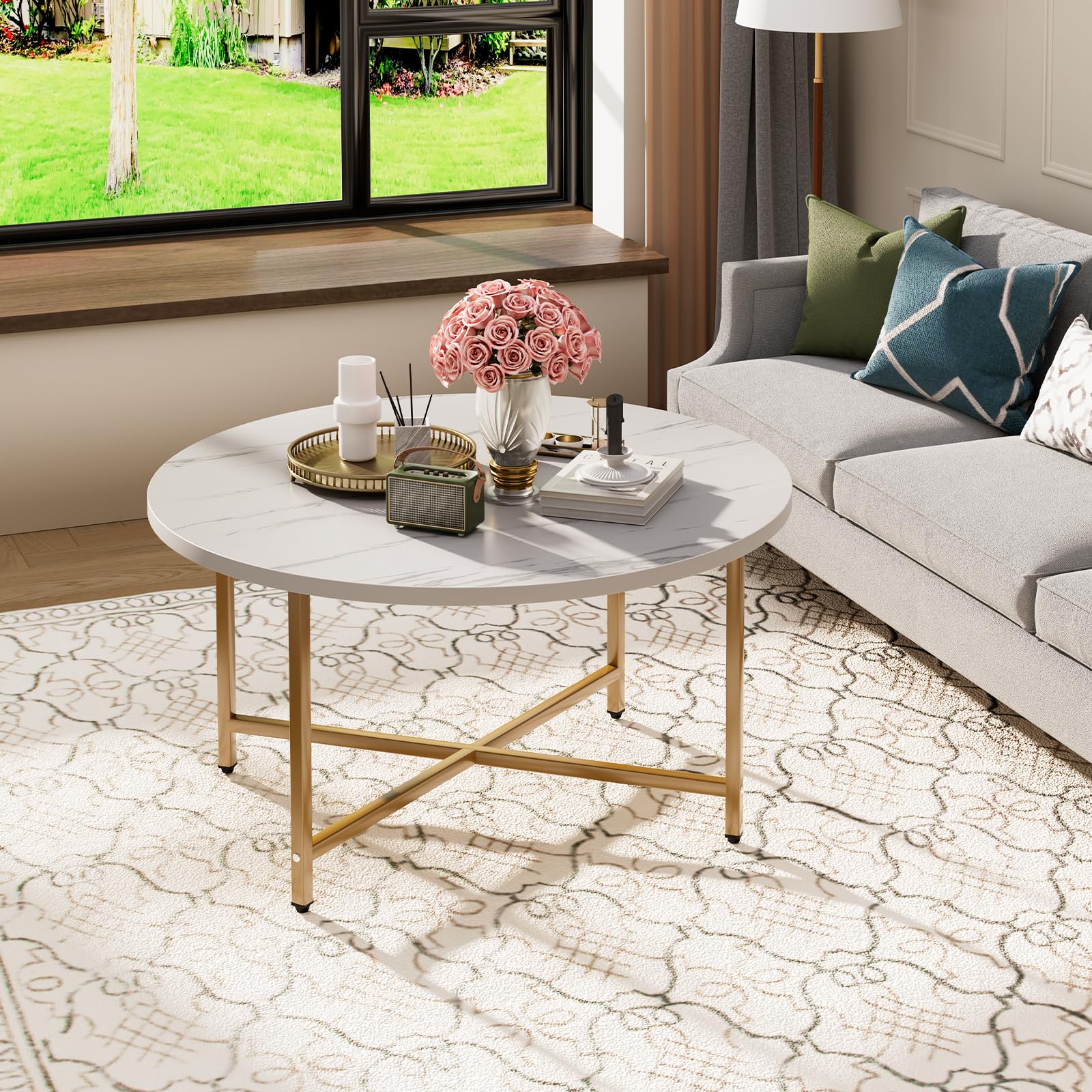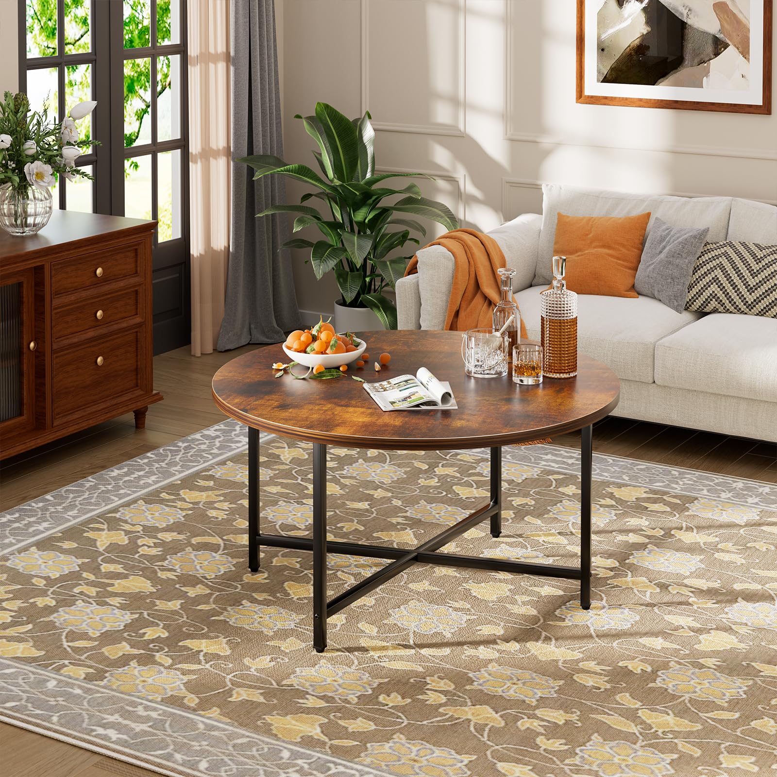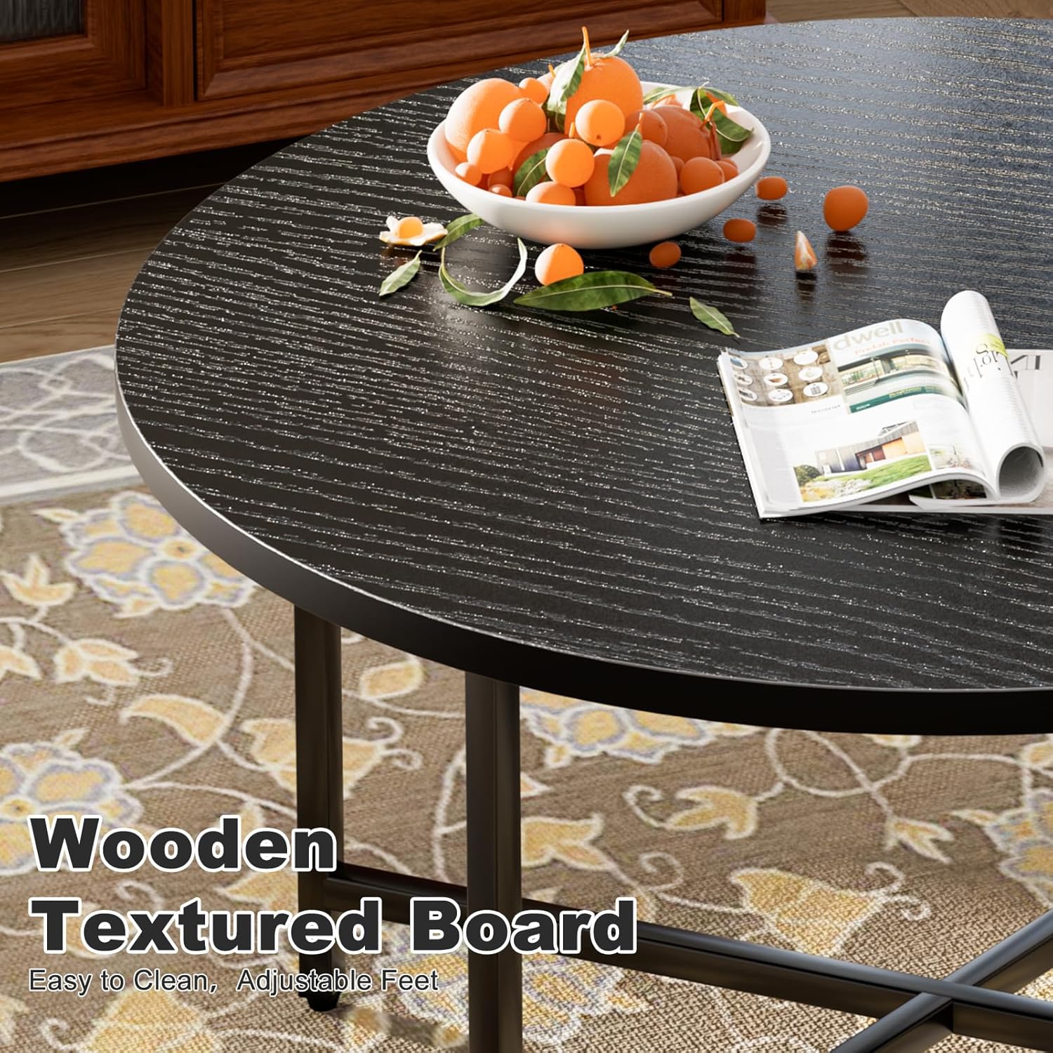 - Sleek Minimalist Design: Crafted with a clean, silhouette, this enlarged 31.5'' round coffee table with metal frame effortlessly complements any decor. Tested height of the circle coffee table decor is perfect as round coffee tables living room centerpiece or office accent table