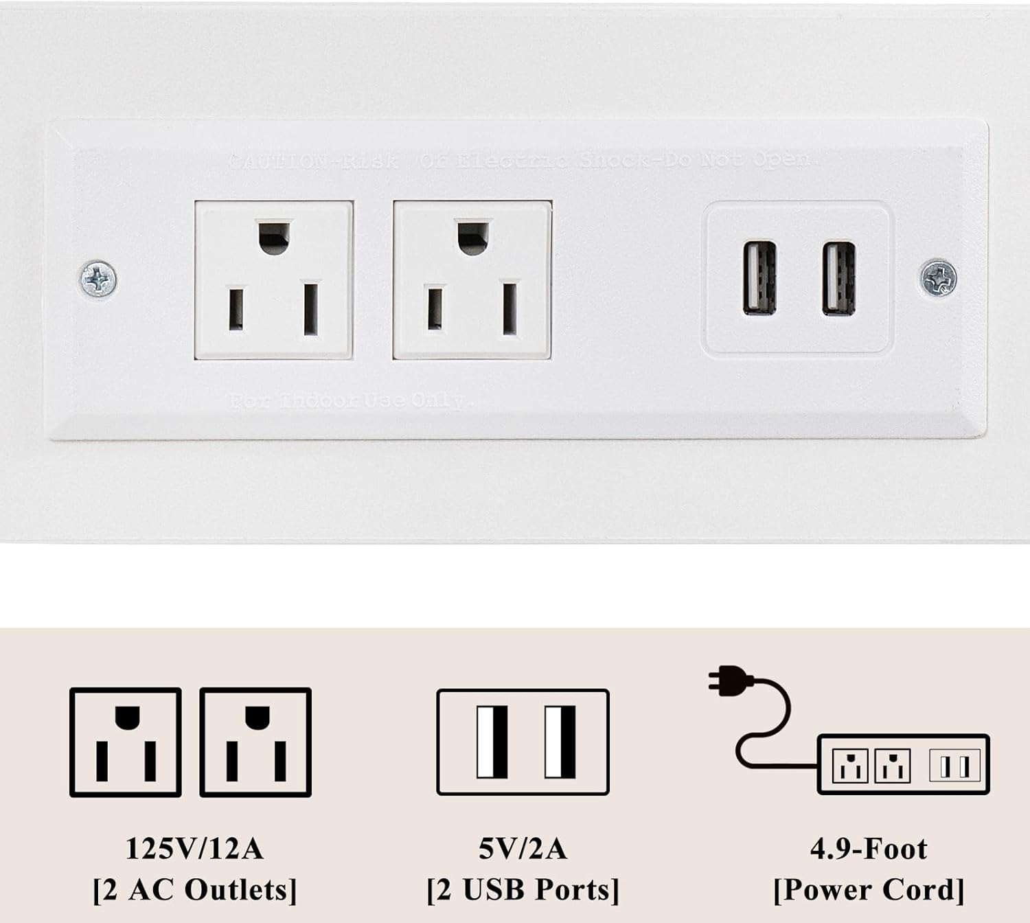 - Side Table with Charging Station: No more searching around for an electrical outlet! This narrow side table comes with 1 AC outlet, 2 USB ports and a 4.9-foot extension cord, so you can easily charge your phone, laptop, tablet, lamp and other devices.