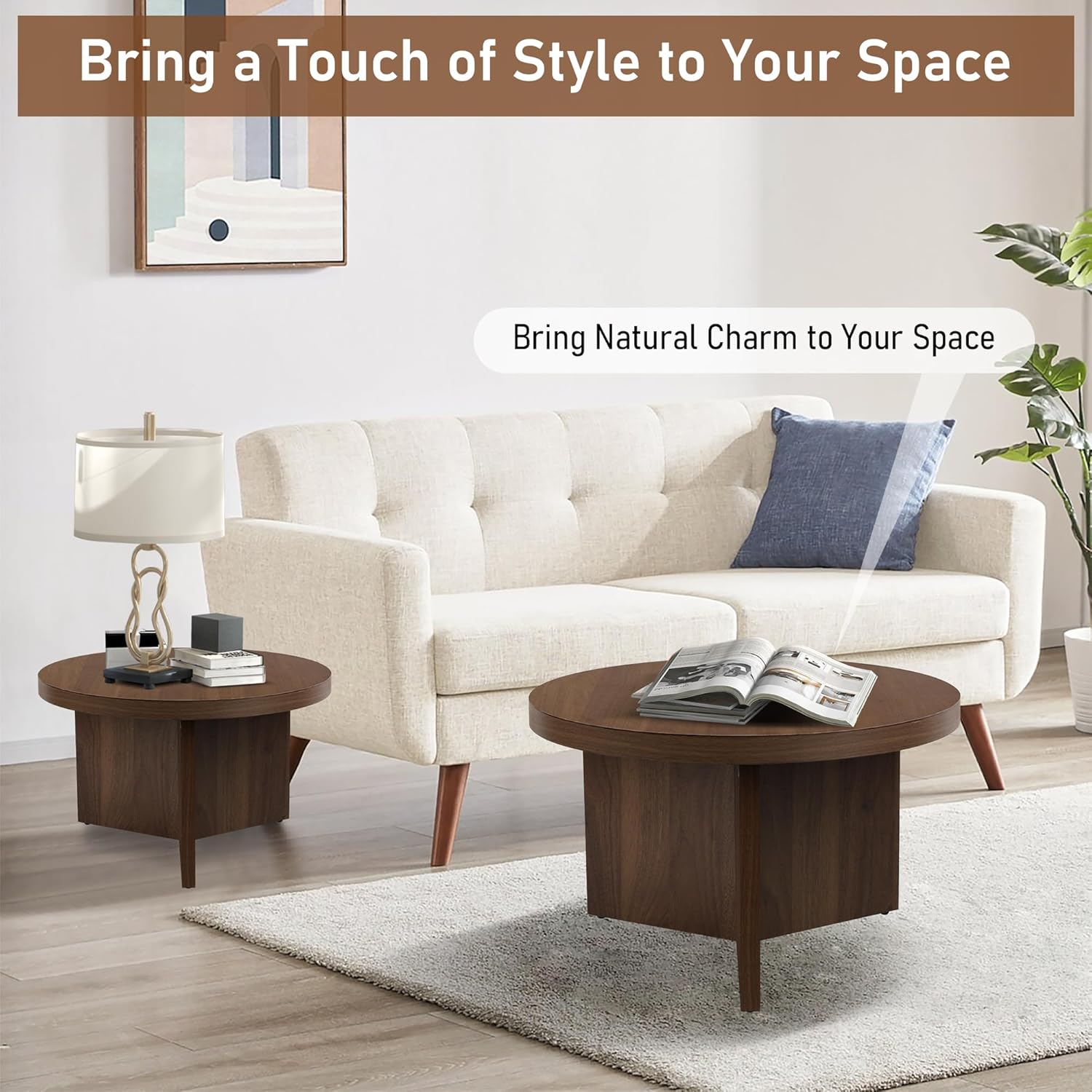 - 2-Piece Round Coffee Table Set: This nesting coffee table set includes two round tables designed to complement each other, giving your living space a modern and cohesive touch. Use them together for a layered look or separately to maximize your room’s functionality and style.