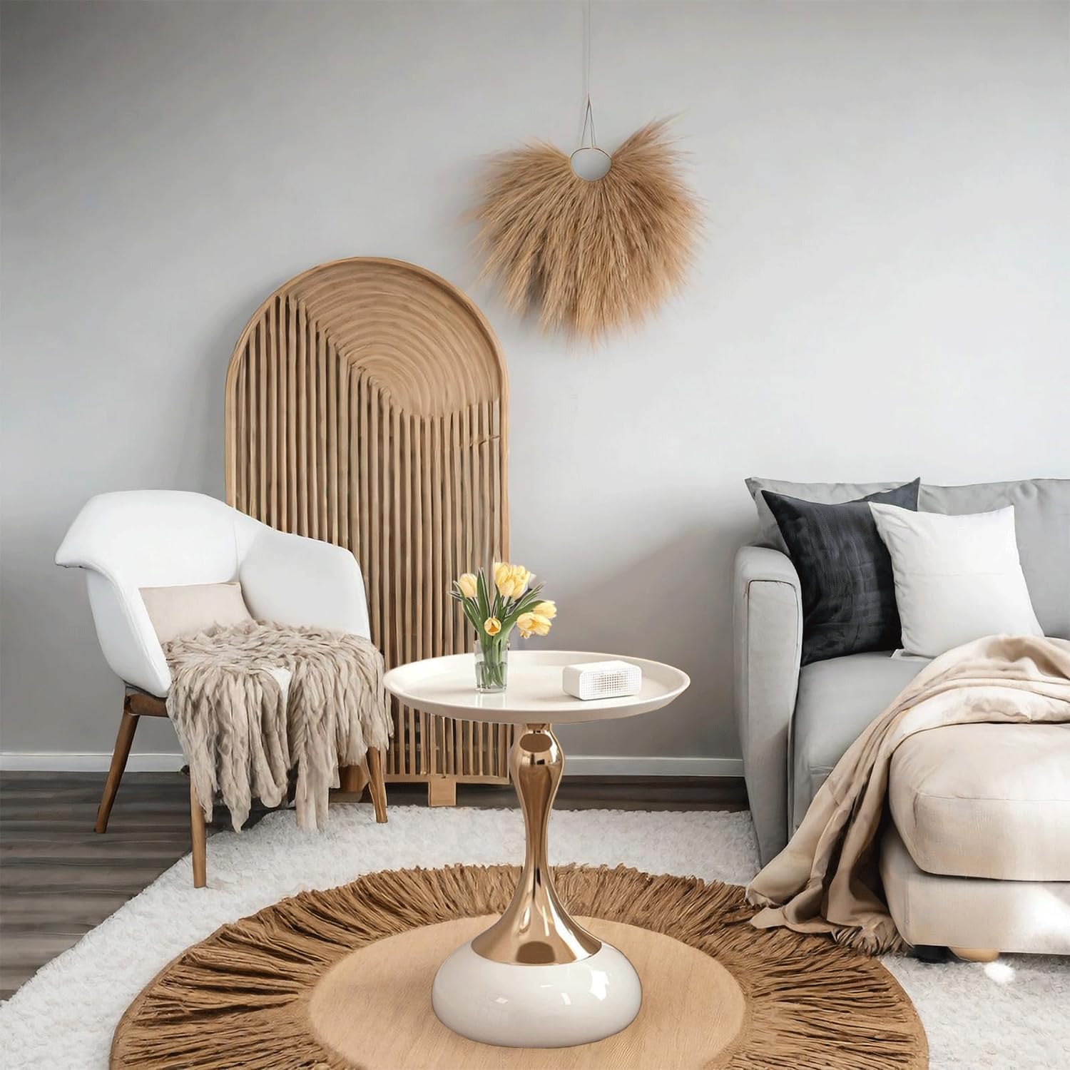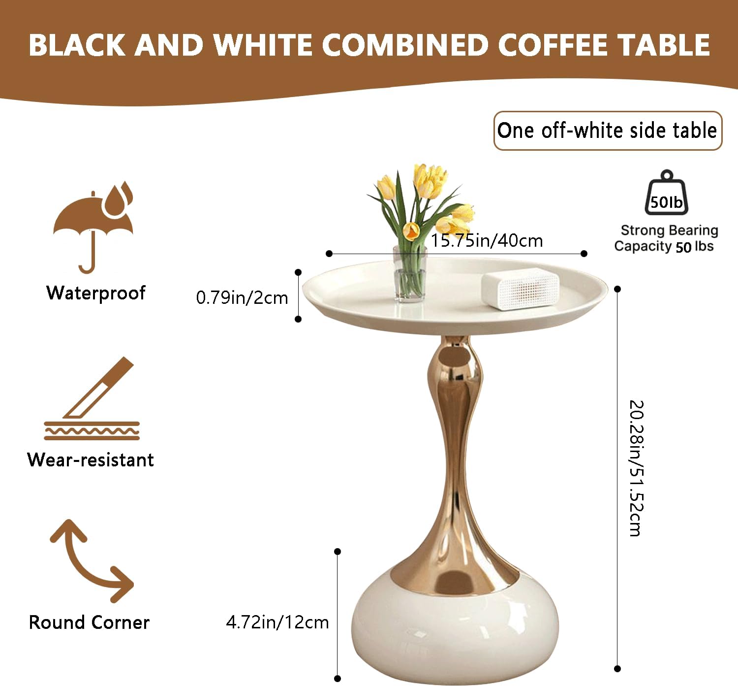 Elegant Modern Side Table - Featuring a Unique Hourglass Design, Ideal for use in Living Rooms, cafes, Dining Rooms, bedrooms, and Outdoors - a Fashionable Decoration (1, Off White)