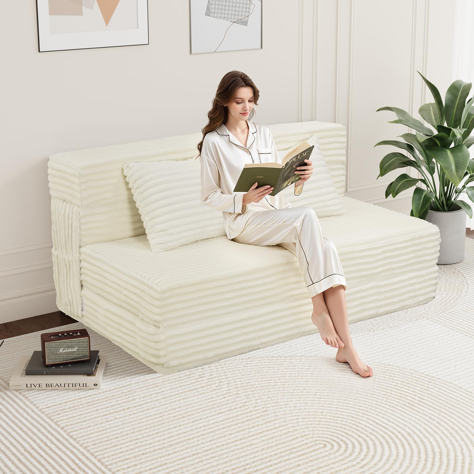 - 【Quick Setup & Compact Storage】No assembly required—just unfold and enjoy! When not in use, the sofa bed folds into a compact size, making it easy to store in closets, under beds, or in tight corners. Its lightweight design allows you to move it effortlessly between rooms, making it ideal for small spaces.