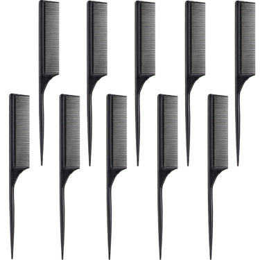 Leinuosen 10 Pcs Rat Tail Comb Styling Carbon Heat Resistant Anti Static Teasing Comb for Back Root Tease Adding Volume Evening Styling(Black)