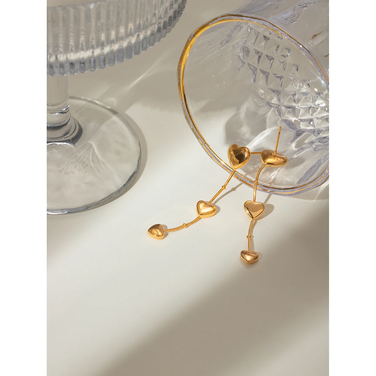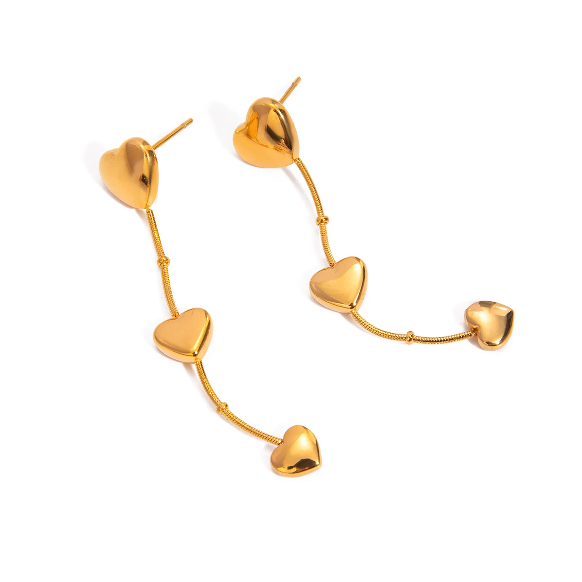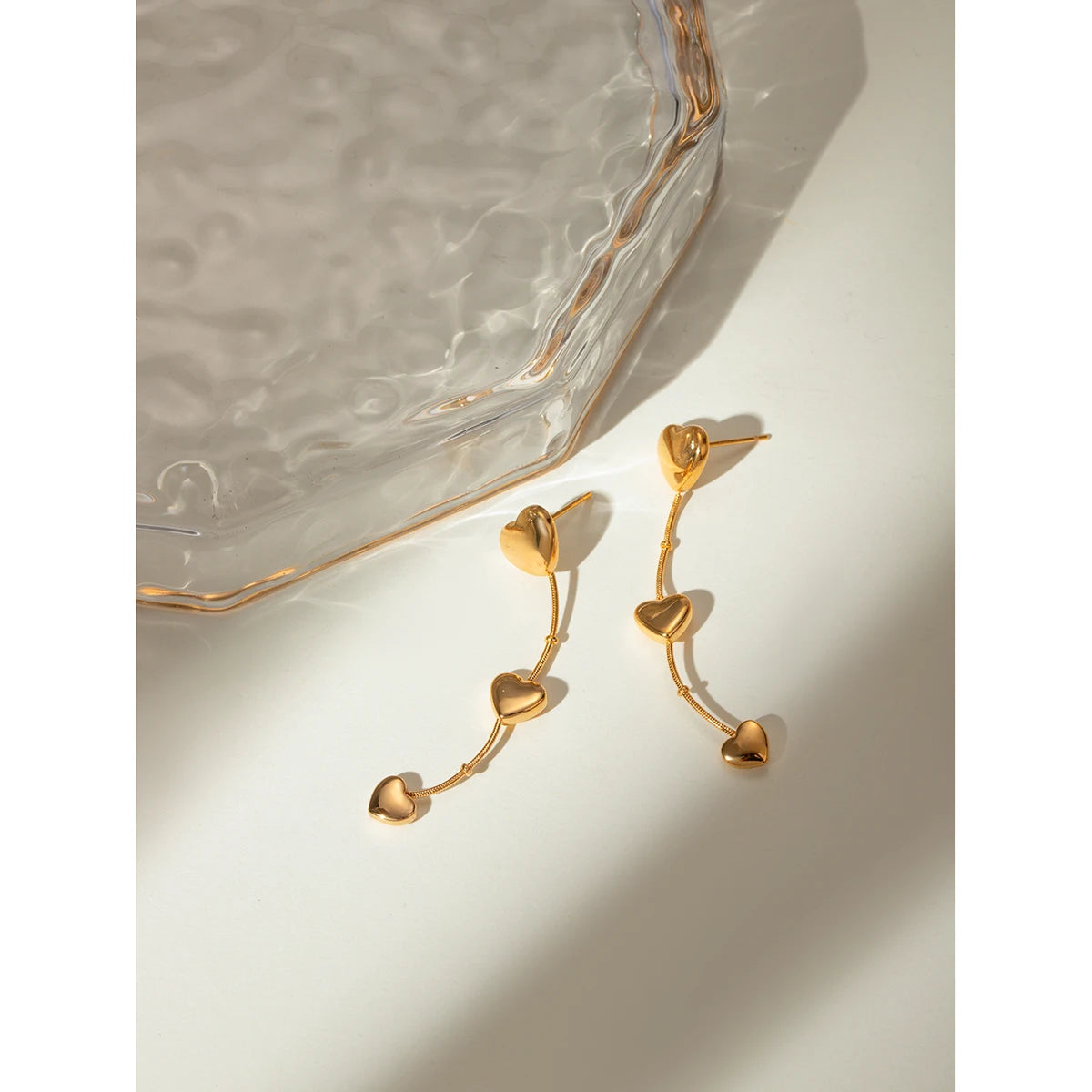 Brincos de Pingente de Coração de Amor Três Consecutivos Geométricos Metálicos de Aço Inoxidável com Banho de Ouro 18K Brilhante para Mulheres Joias de Gala