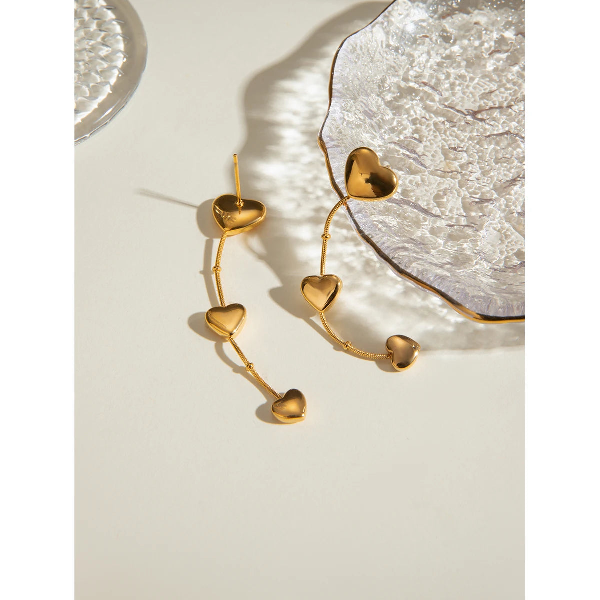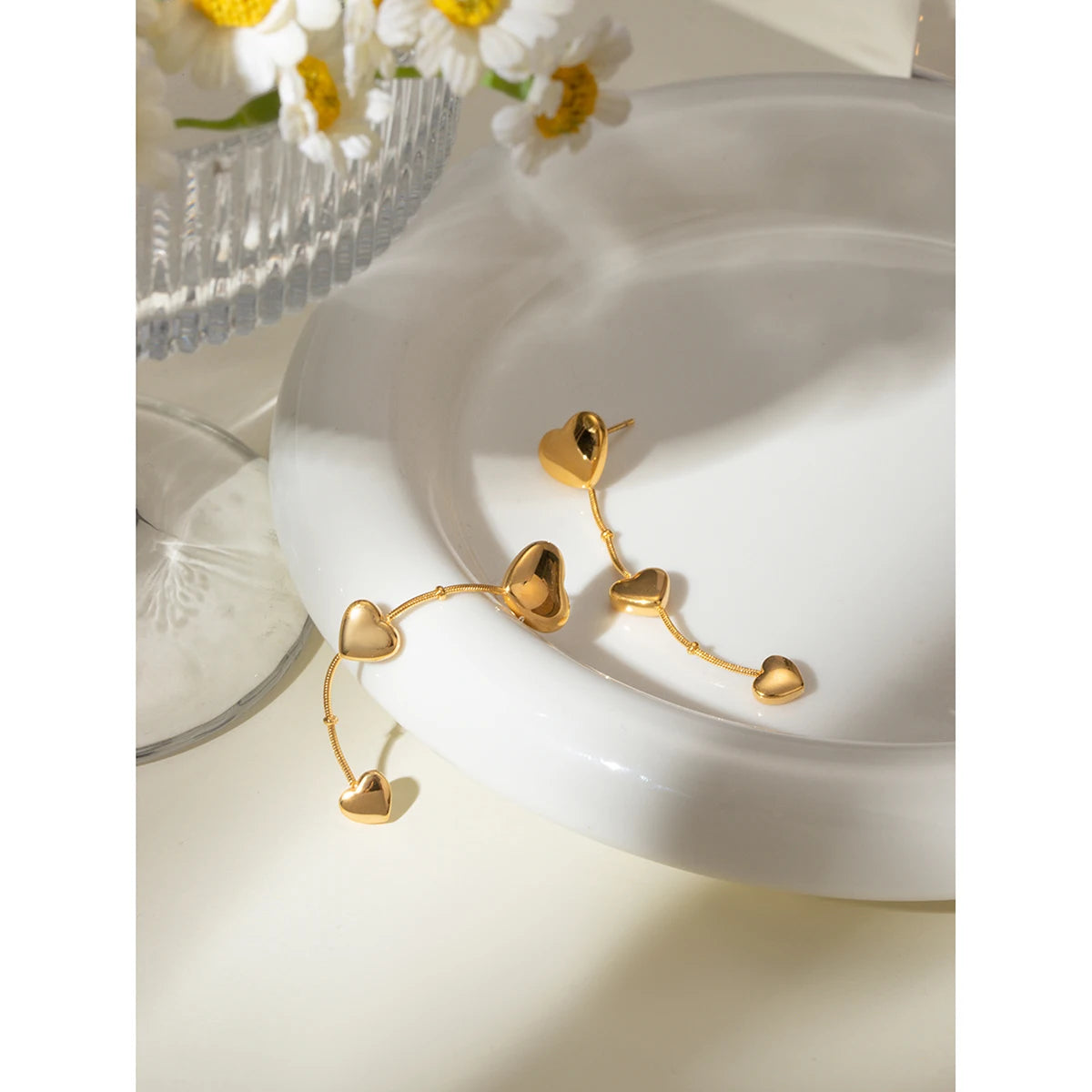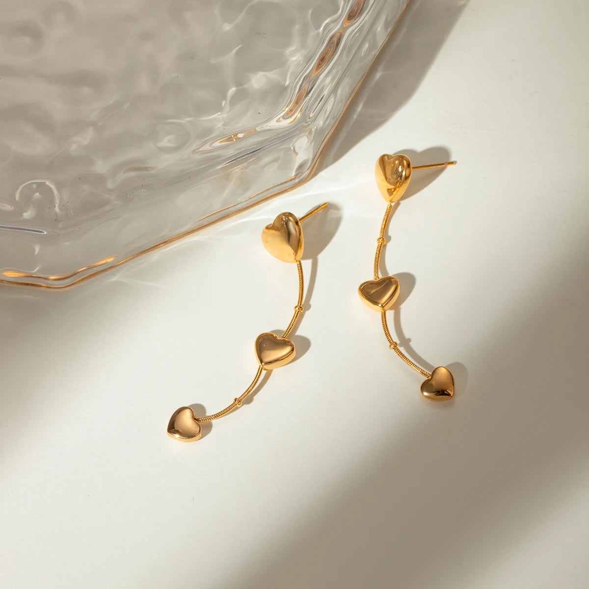 Brincos de Pingente de Coração de Amor Três Consecutivos Geométricos Metálicos de Aço Inoxidável com Banho de Ouro 18K Brilhante para Mulheres Joias de Gala