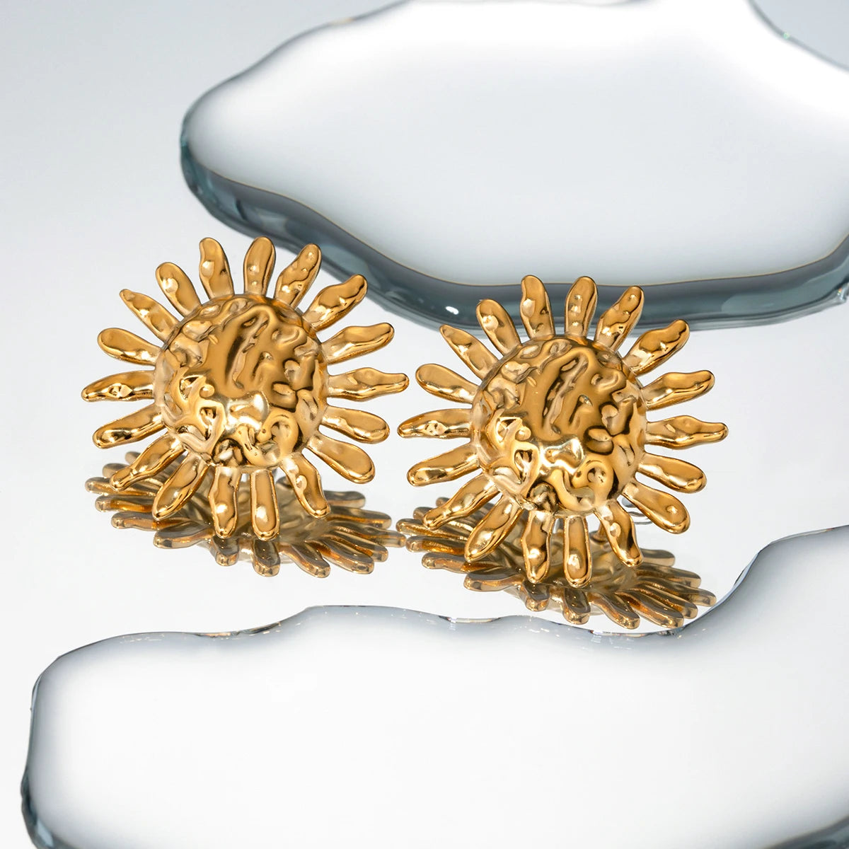 Brincos pendentes em aço inoxidável banhado a ouro 18k com incrustação de turquesa em formato de girassol, joia estilosa, moderna e à prova d'água para mulheres