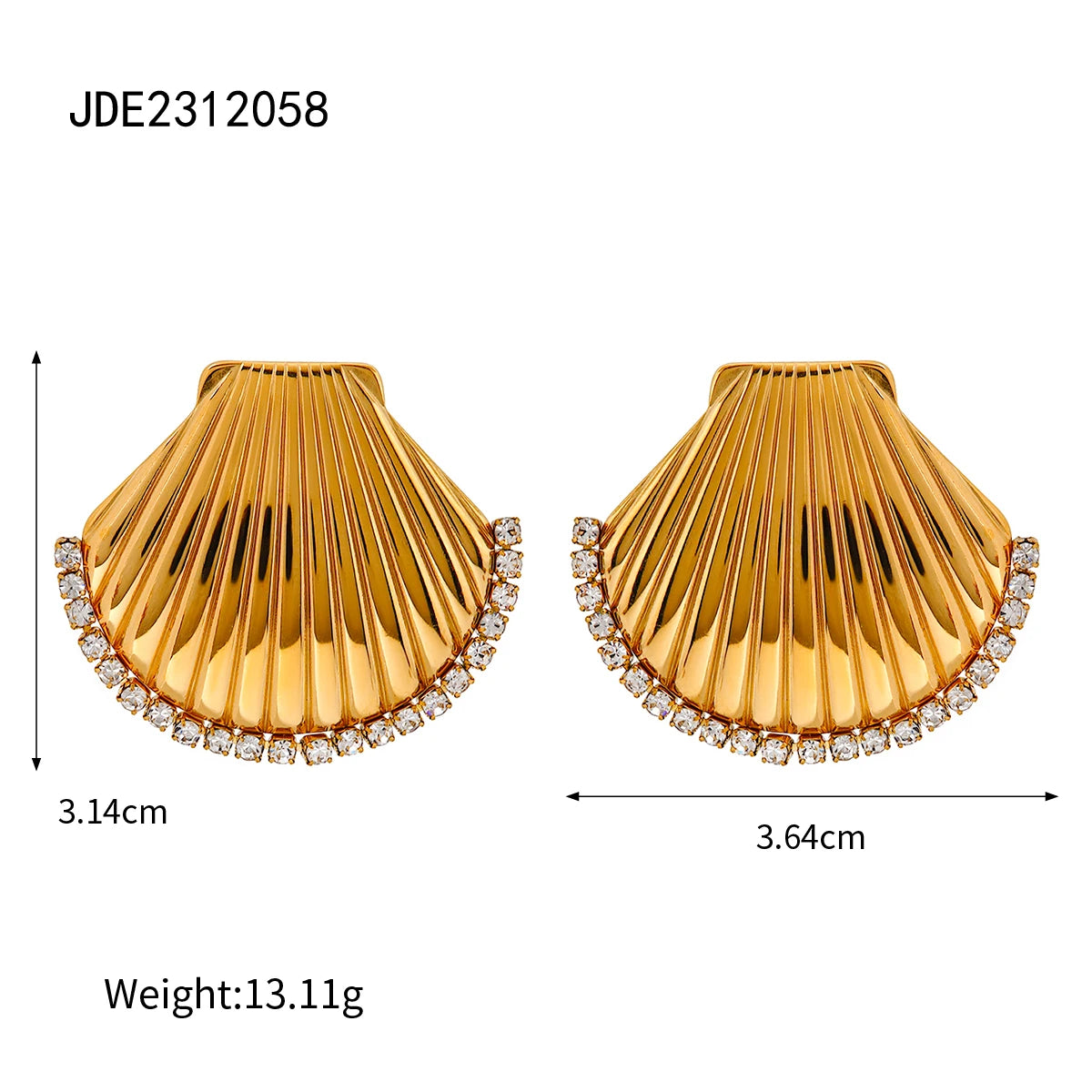 Brincos Vintage de Estudo da Série Vórtice de Concha do Oceano do Mar de Verão Banhados a Ouro 18K em Aço Inoxidável, Joias à Prova d'Água para Mulheres