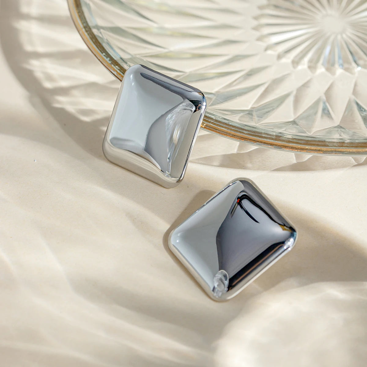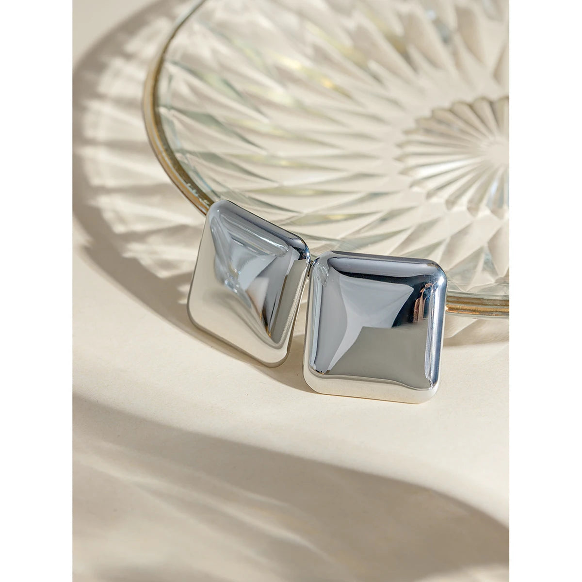 Brincos Quadrados Lisos 18K para Mulheres Aço Inoxidável Textura Metálica Cor de Aço À Prova d'Água Charme Doce Presente de Joia Novo